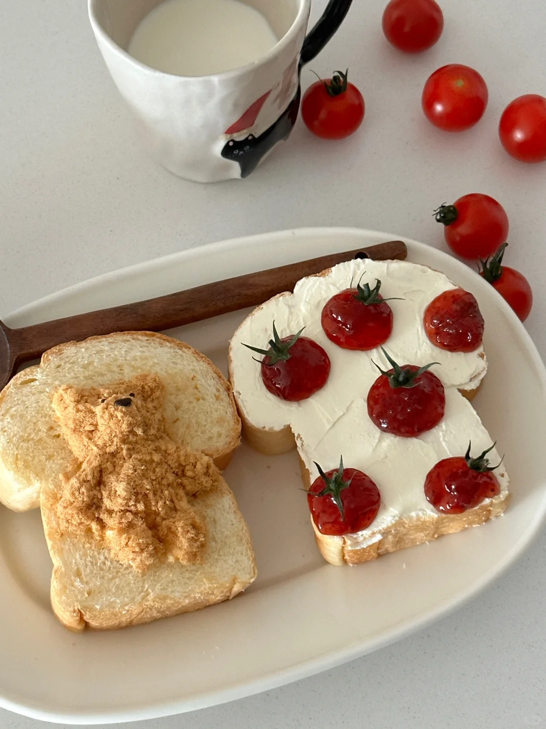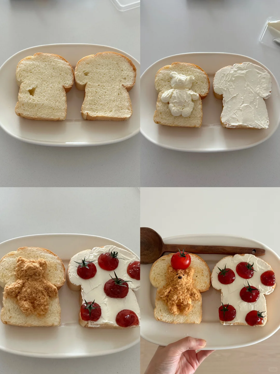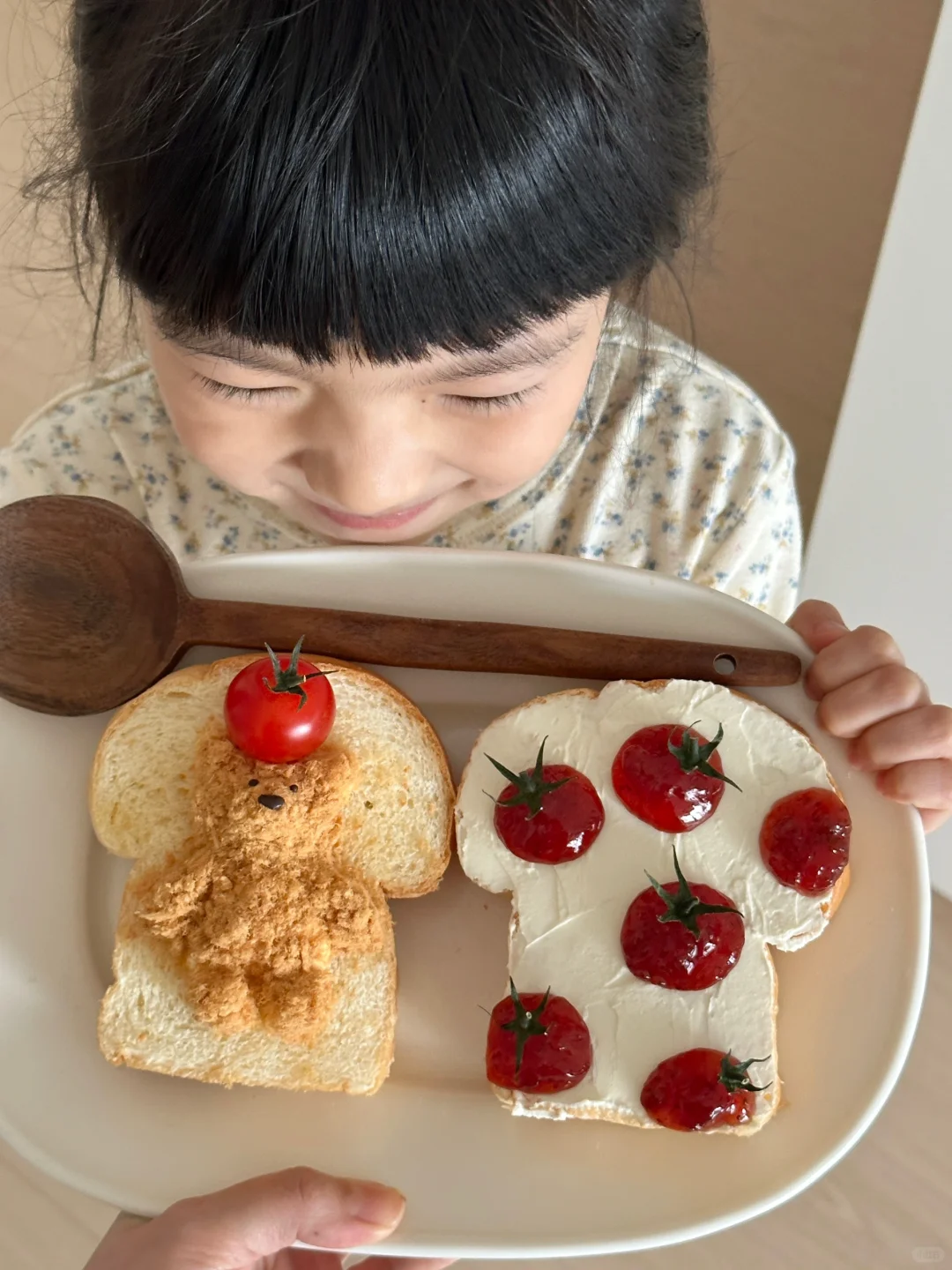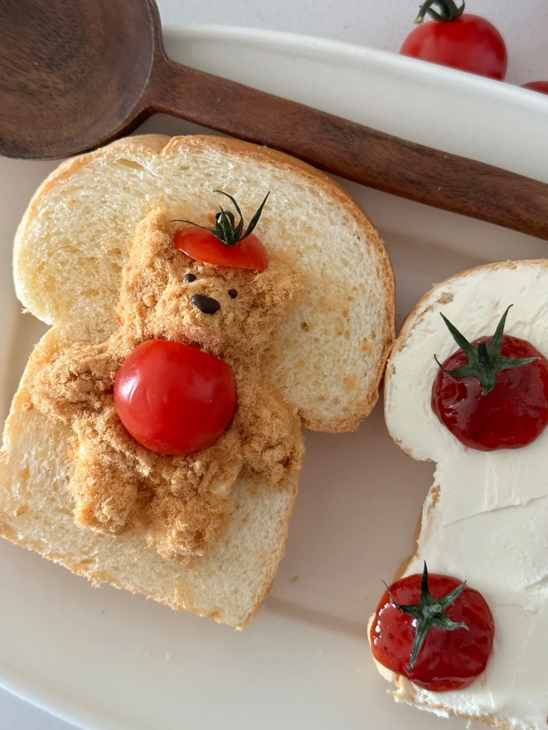 是毛绒绒可爱的巴塞罗小熊啦~ 奶油奶酪➕肉松别有一番风味~番茄是草莓酱哦~ 快来试试吧[萌萌哒R]