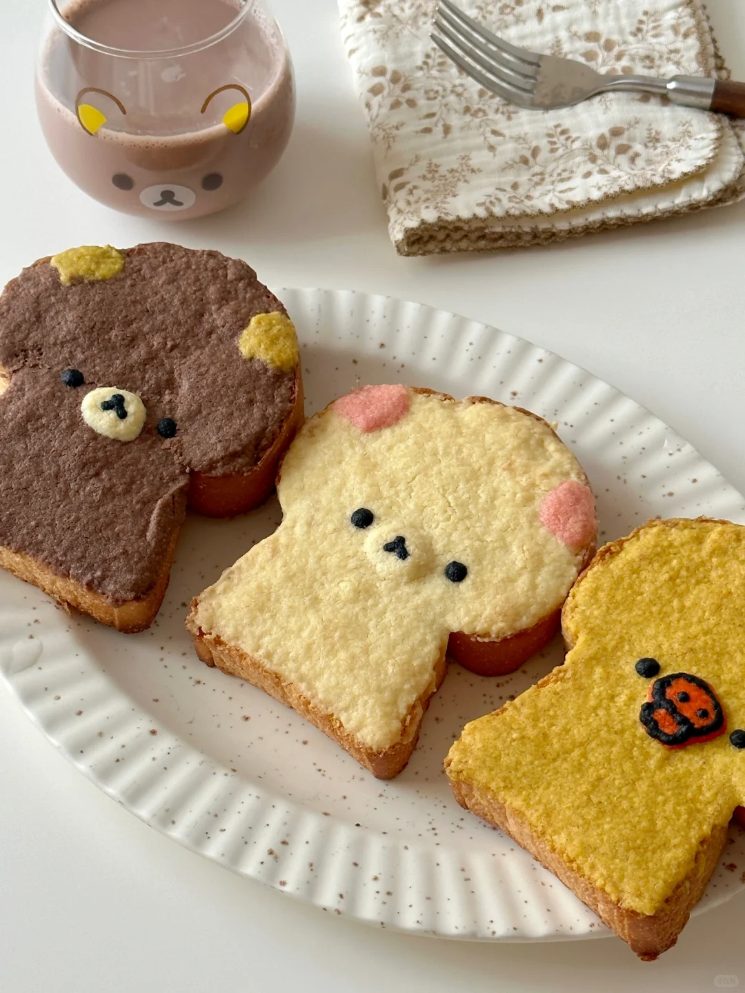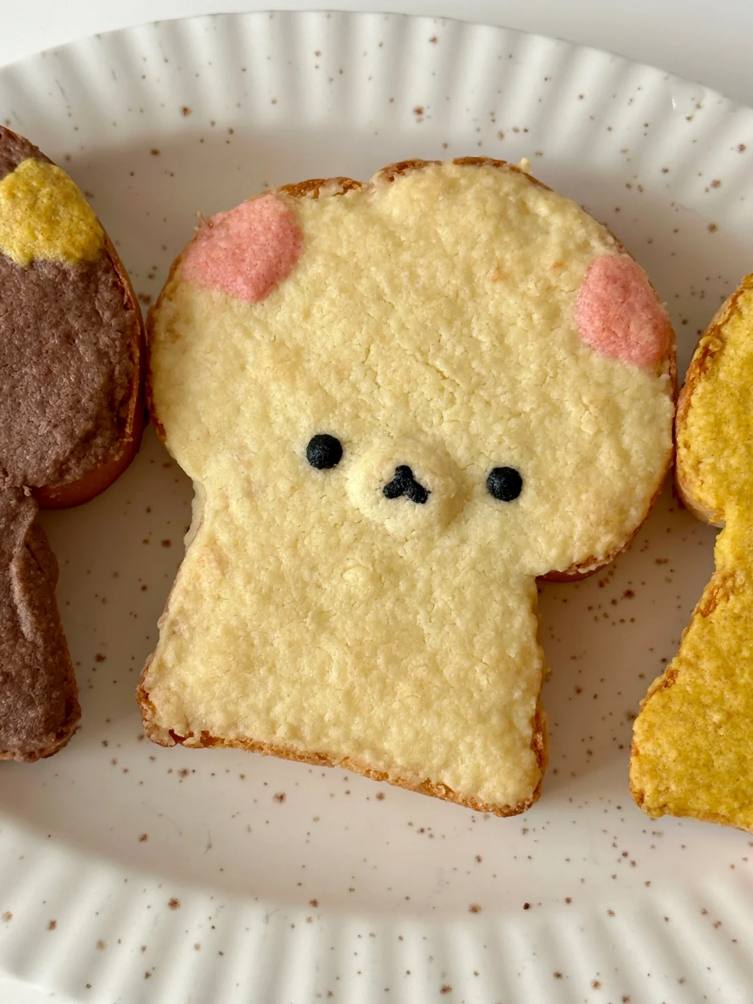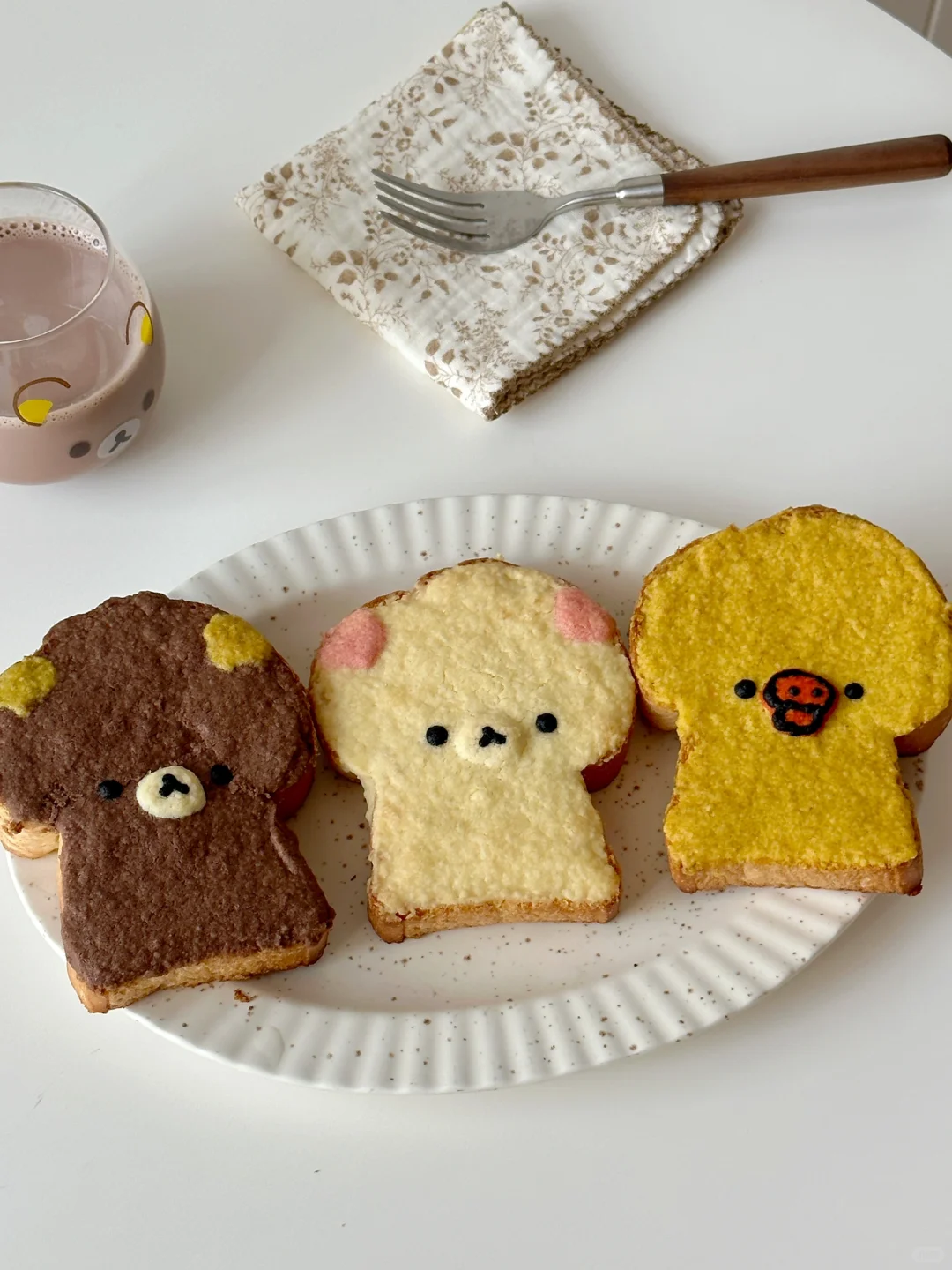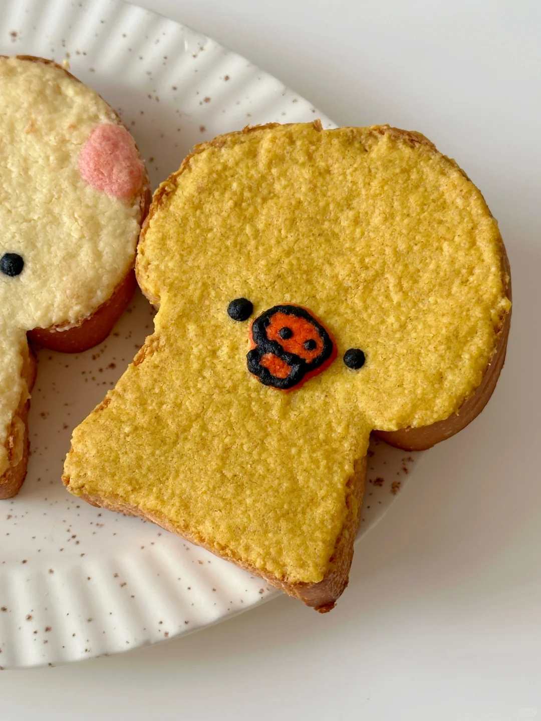 酥酥脆脆,奶香十足的奶酥吐司片大家一定要试试呀~做法简单!十几分钟就能搞定好吃的一餐[害羞R][害羞R][两颗心R]烘烤的时候满屋黄油奶香~ [种草R]所需材料: 吐司片,黄油60g,细砂糖15g,低筋面粉65g,可可粉,南瓜粉,仙人掌果粉,竹炭粉 [种草R]制作步骤: ①软化黄油里加入细砂糖,搅拌均匀 ②筛入低筋面粉,翻拌至无干粉 ③用可可粉(棕色),仙人掌果粉(粉色),竹炭粉(黑色),南瓜粉(黄色)调色 ④刮刀磨面,细节部分用裱花袋装饰 ⑤烤箱预热180°烘烤8-10分钟即可 快来交作业吧![萌萌哒R][萌萌哒R]