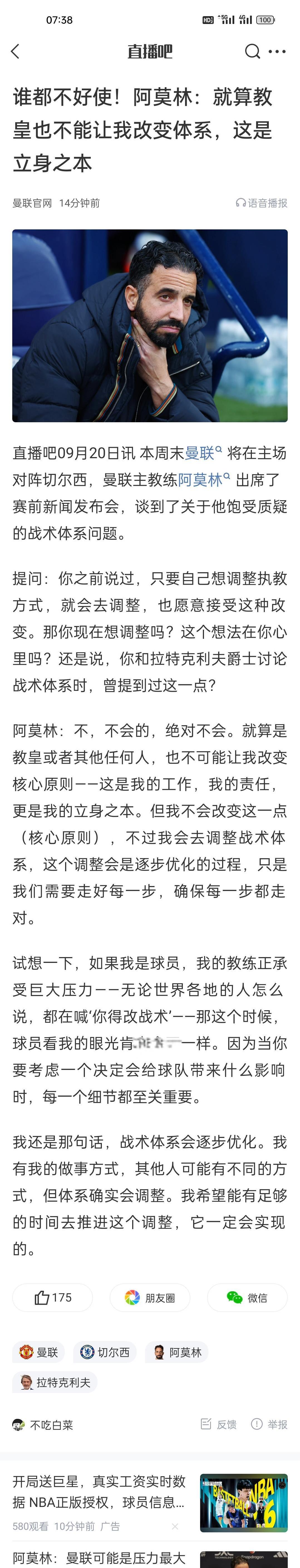 谁都不好使!阿莫林:就算教皇也不能让我改变体系,这是立身之本。 这家伙越来越像个
