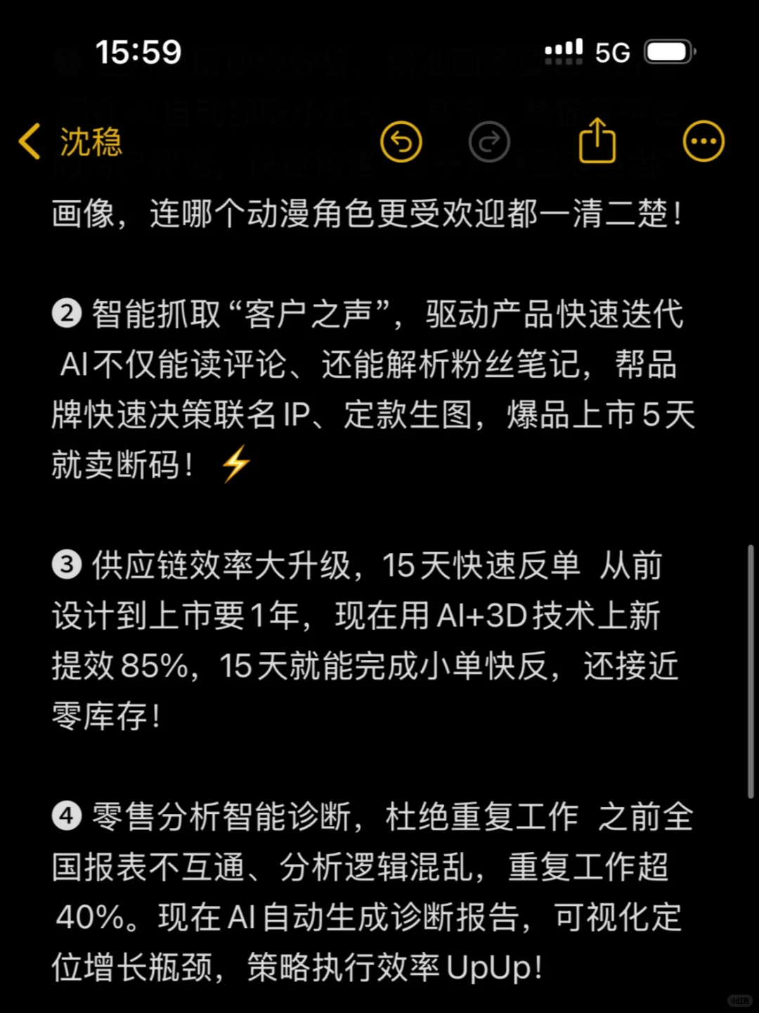 ❷ 智能抓取“客户之声”,驱动产品快速迭代 AI不仅能读评论、还能解析粉丝笔记,帮品牌快速决策联名IP、定款生图,爆品上市5天就卖断码!⚡️