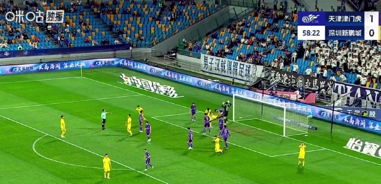 杨一鸣错失空门! 中超联赛第25轮,天津津门虎vs深圳新鹏城的比赛进行到第58分钟,张煜东制造前场右路定位球,姜至鹏开平快球进禁区,前点和中路的双方球员纠缠在一起,球来到后点后,杨一鸣准备不足,未能完成射门动作,球碰到其身体后出了底线。#中超赛场# #中超联赛#