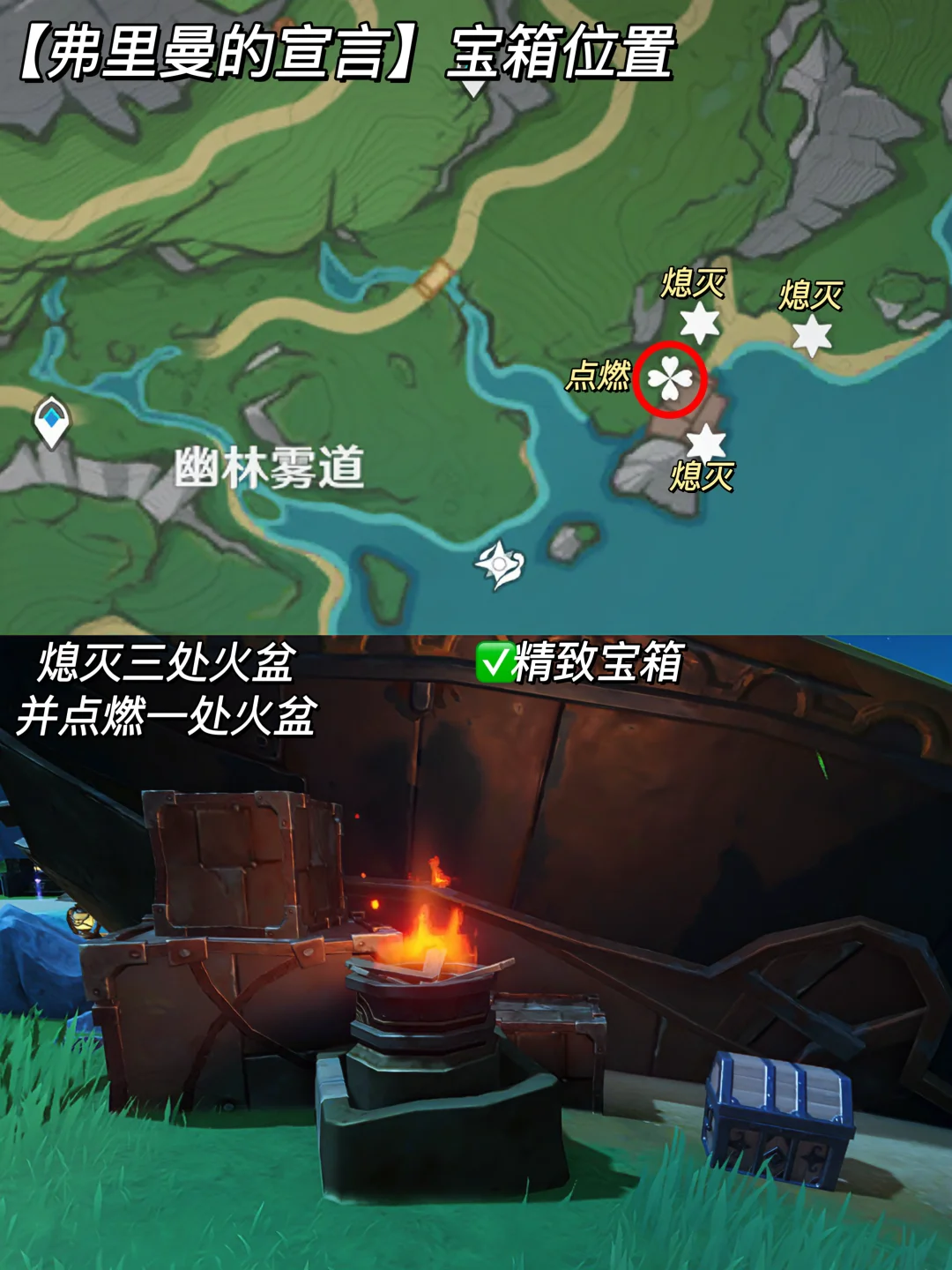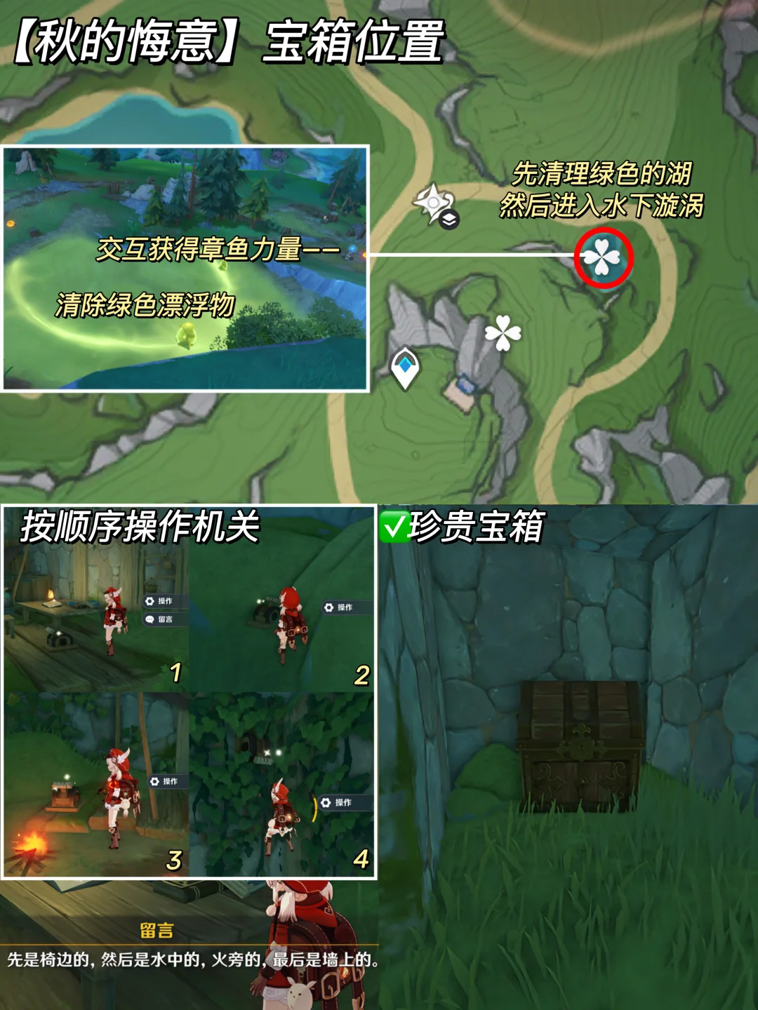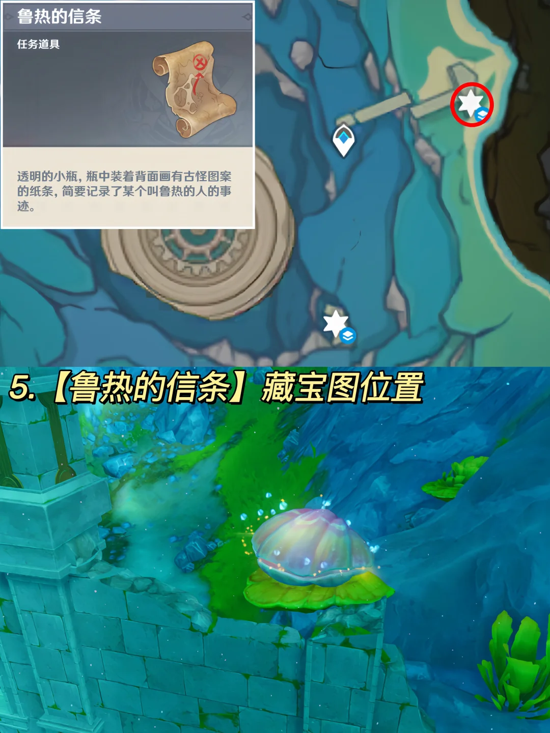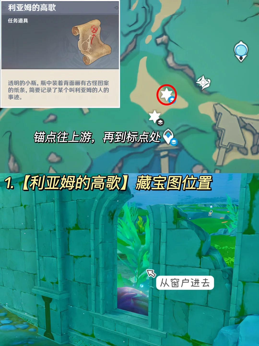 ⏰耗时30min ✅8个宝箱+1个隐藏成就【为了众人的愿望】 ⏭️去枫丹海底寻找八张藏宝图,根据提示开启八个宝箱,最后可以获得一个成就。 全部做完背包里的八张藏宝图会合成一张完整的[虹彩蔷薇的理想]藏宝图。 八张藏宝图: 🔘利亚姆的高歌 🔘阿托斯的供词 🔘巴罗的期冀 🔘帕克的期冀 🔘鲁热的信条 🔘秋的悔意 🔘罗基•艾威尔森的失落 🔘弗里曼的宣言