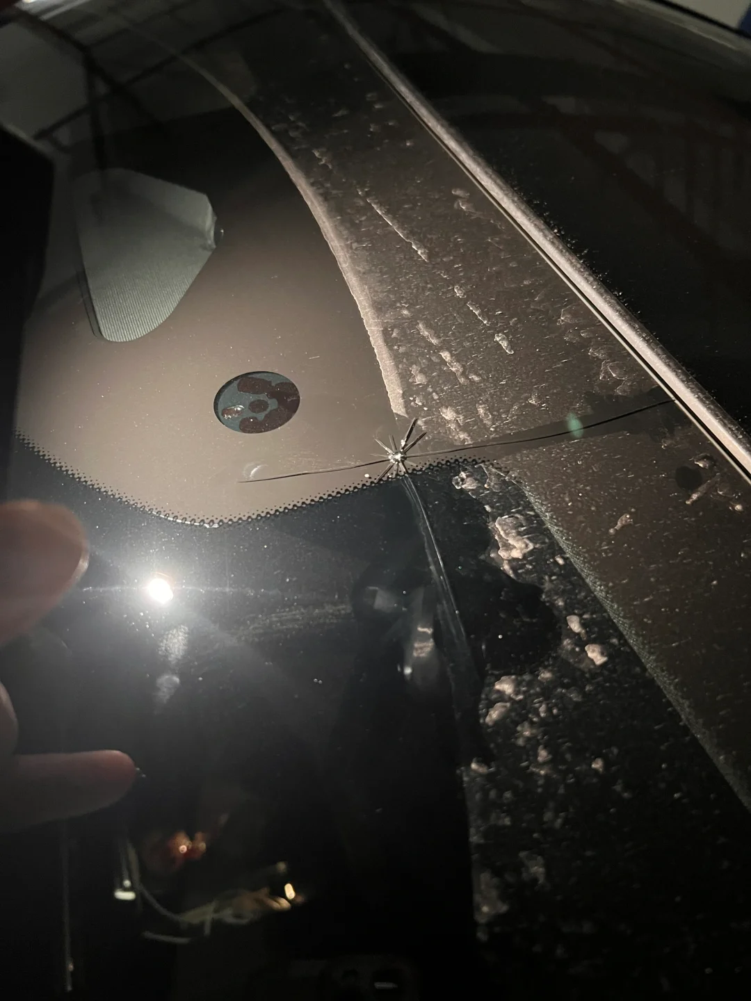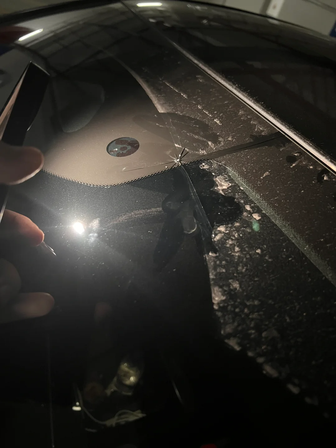 [向右R]车友前挡玻璃裂了于是劝他尽早去换一块,因为发现这个裂痕会变大,而且这么大的缝隙做玻璃修复很难两全,所以车友直接走了保险到4S更换了原厂的玻璃前挡!