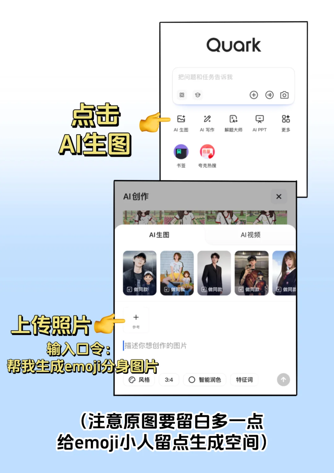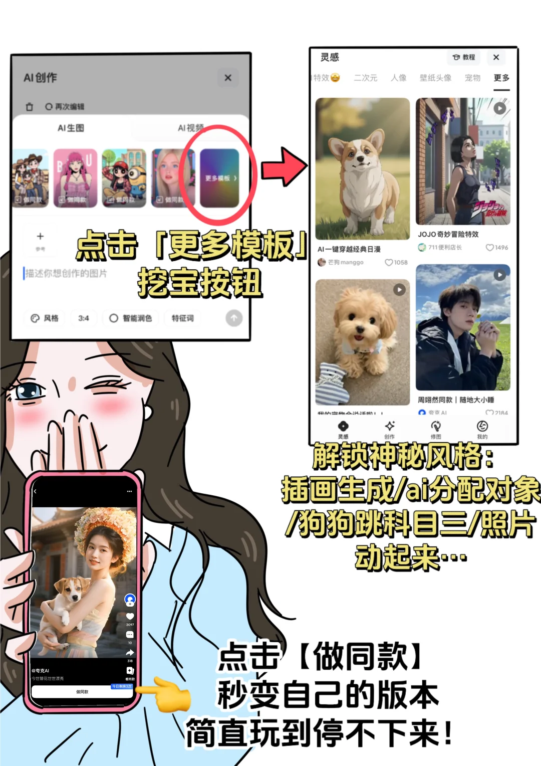 上传照片+输入口令,秒变emoji分身/动漫小人,还能解锁插画、动效等隐藏玩法~模板超多,做同款生成专属盲盒大片,玩到根本停不下来!