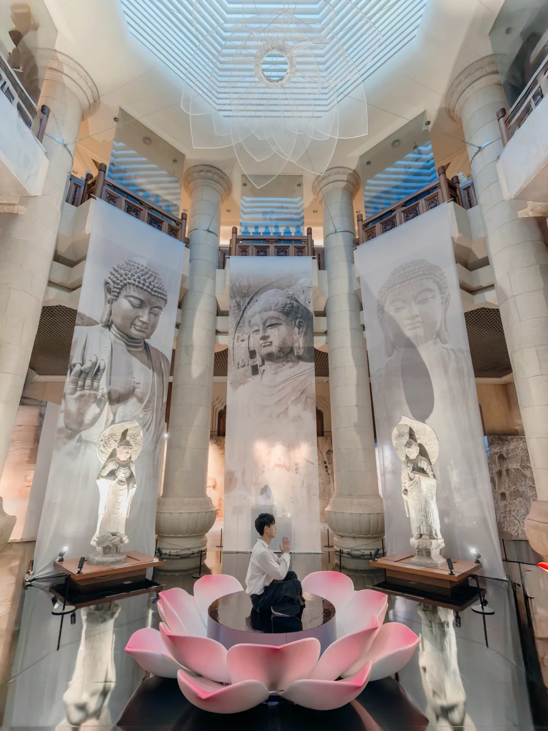 必去‼️宫殿内部极尽华丽,穹顶浮雕精美绝伦,国庆期间还有超多限定活动!🎆烟花大秀、国风高跷巡游《市郎图》、绚彩派对、灵山水灯节……各种表演和玩法真的让人期待值拉满!✨