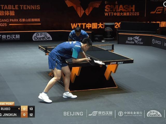 两人的对拉好精彩! 第一局梁靖崑🇨🇳15-13险胜温瑞博🇨🇳 ​​​! 这是WTT中国大满贯男单1/32决赛, 第一局关键时刻温瑞博有两个发球失误,四个局点都丢了,小温心态要稳当点儿啊,不要受场上观众的影响。 反观大胖梁靖崑要沉稳好多,不慌不忙后来居上了。 今天看来,小温在国乒小将中算是拔尖的了。 这不,第二局梁靖崑🇨🇳5-11不敌温瑞博🇨🇳! 评论区继续播报战况!