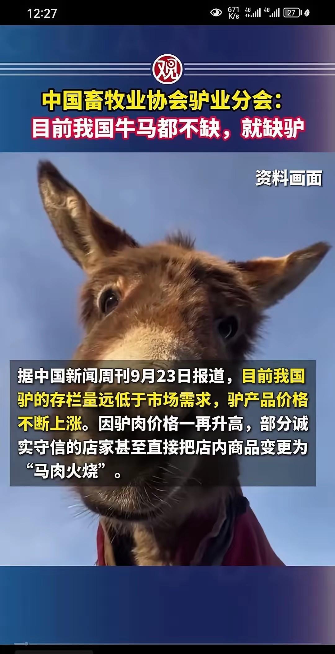 刚刚看到这个新闻,我很诧异,原来我老公跟我说的是真的? 他要养驴。 上周我回农场,吃饭时,他突然来一句“明年我来养几头驴。” 我以为是玩笑话。怼了句“你不如养龙,天上飞,多好。” 是的,我不希望他再养什么了。 实在是他养的东西够多,我倒不怀疑他养不好,肯定能养好。 他天生就像是干养殖的,养什么成什么,虽然过程坎坷很多。但终归是有个好结果。 可驴,好长时间我就听他说过。 去年,他还说小时候他们村子里就有一头驴,他父亲负责养。 那时候我还跟他玩笑,你也养一头。 玩笑话,转眼忘了。 哪知隔了一年他突然又说。此时我的心态跟去年又不同了,啥也别养就好。 他却说“现在市场缺驴,咱们养不好吗?” 我没理他。 市场缺驴?谁吃驴肉啊?反正我是不吃的。