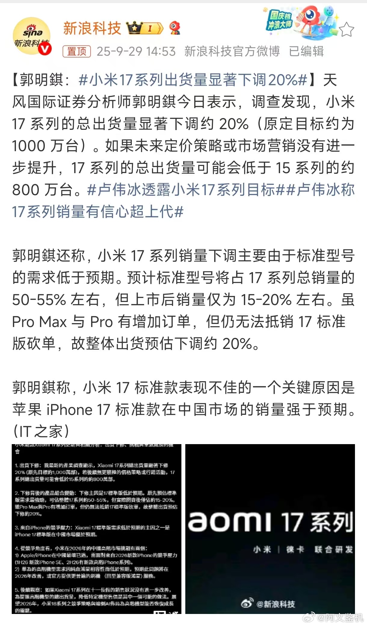 小米手机维修备件价格公布小米17自从官方宣布爆了之后,各种负面缠身,今天这几个热搜,明明是一个证券分析师的预测,路人听起来,传着传着就变成了一个既定事实,不愧是学新闻学的,张雪峰的含金量还在提升,还是那句话,今年大环境出奇的差,各大厂商其实卖得都不好,其实只要这次小米17系列能比去年小米15系列卖得好,已经是非常牛批了,让子弹飞一会儿,看看下个月其他厂商的销量能不能比去年卖得好?