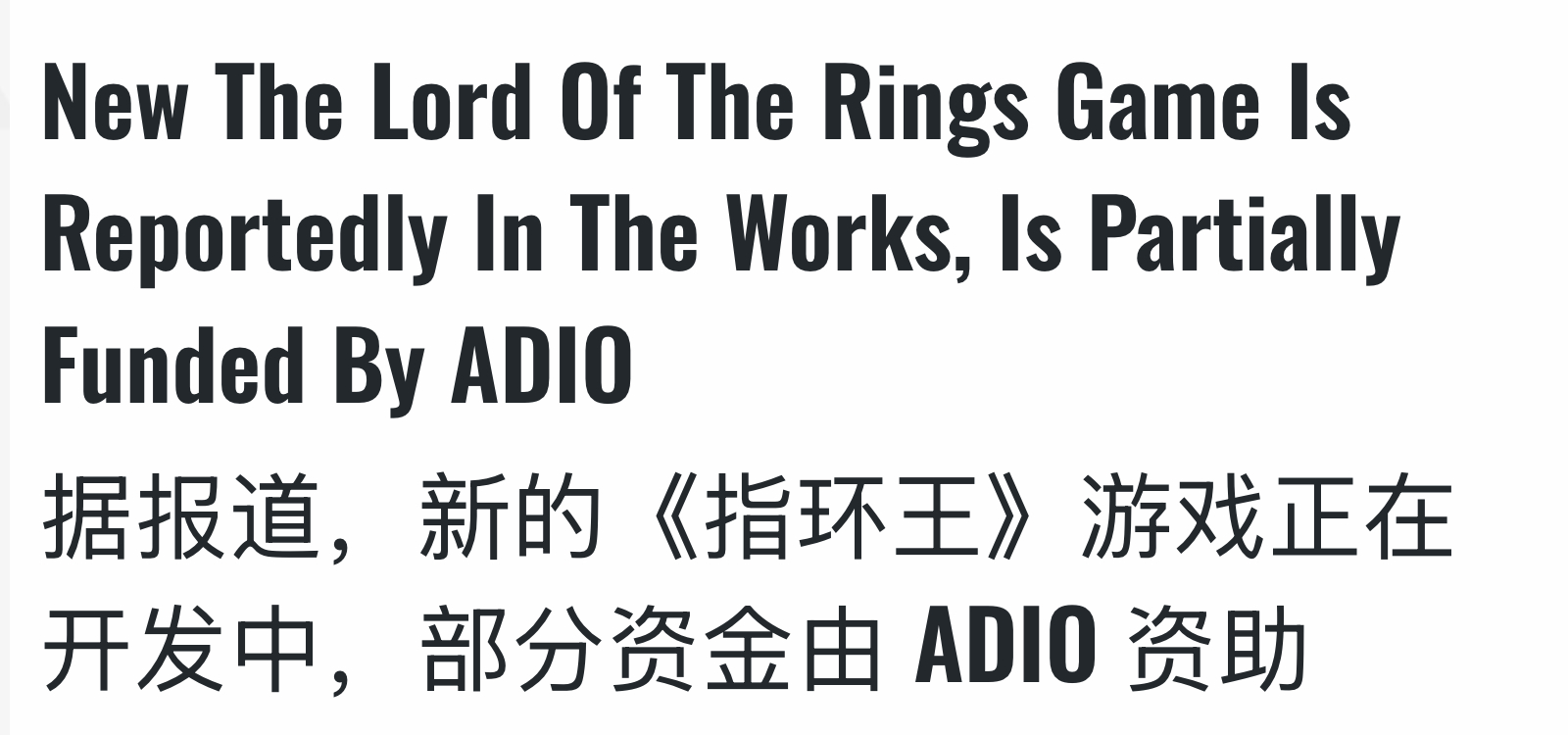 据外媒Insider Gaming报道,一款全新的《指环王》游戏正在开发中,部分资金由阿布扎比投资办公室(ADIO)提供,预计金额约为1亿美元。