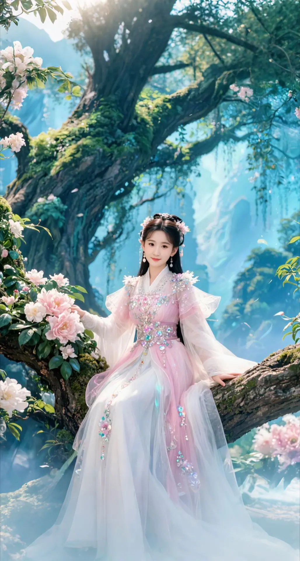 秋日黄昏,白裙少女倚栏杆,微风轻拂发梢,静享时光美好。