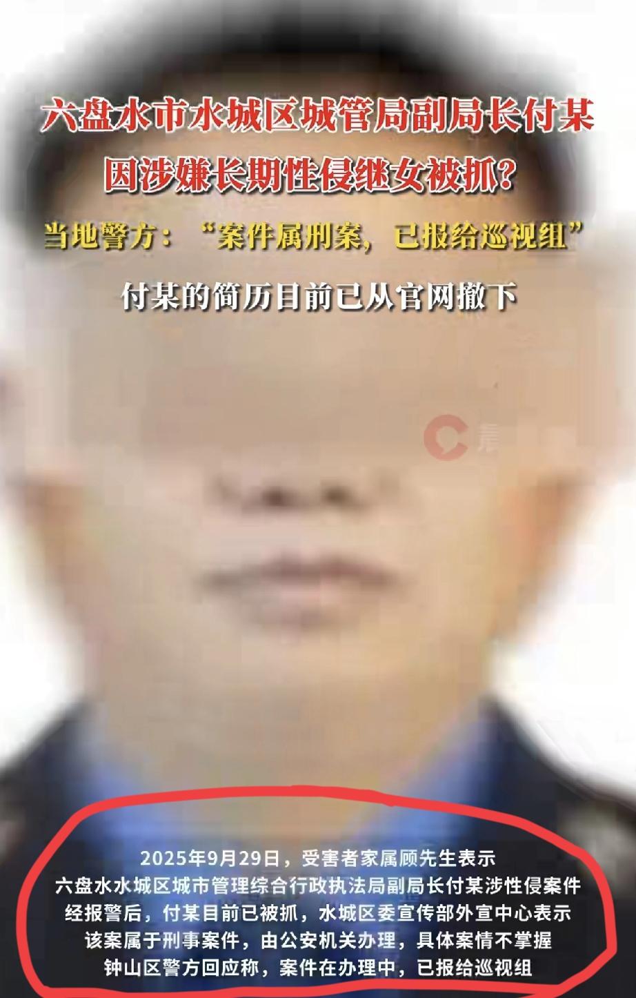 城管局一个副局长因长期性侵自己的继女已经被刑拘,这个女孩太不幸了,本以为有一个当官的爸爸可以给她的人生撑起另一片新天地,谁知道却进了虎狼之窝… 孩子的妈妈不知道吗? 孩子自己不反抗吗? 这些都不得而知 这个人面兽心的副局长 在单位里道貌岸然 在家里却禽兽不如 怎么当上副局长的?