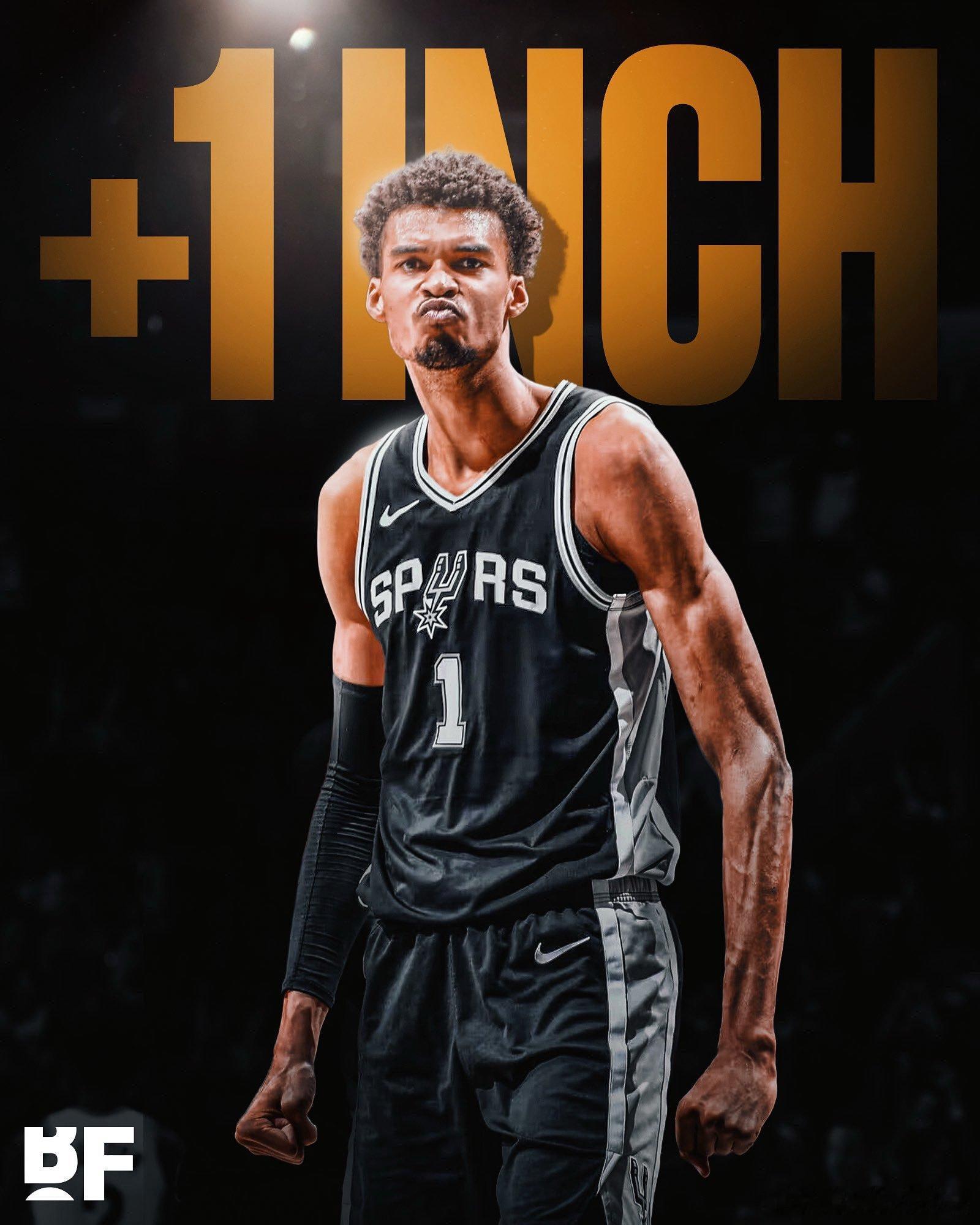 又长高了!😲文班亚马在今年休赛期长高了1英寸,目前为7英尺4英寸(约2米24)。