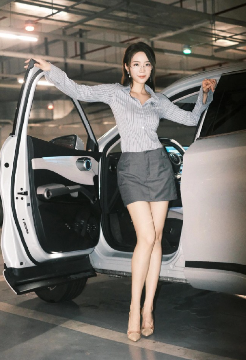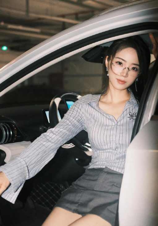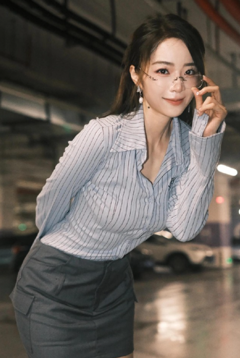 余霜地下车库随拍,戴无框眼镜御姐感十足