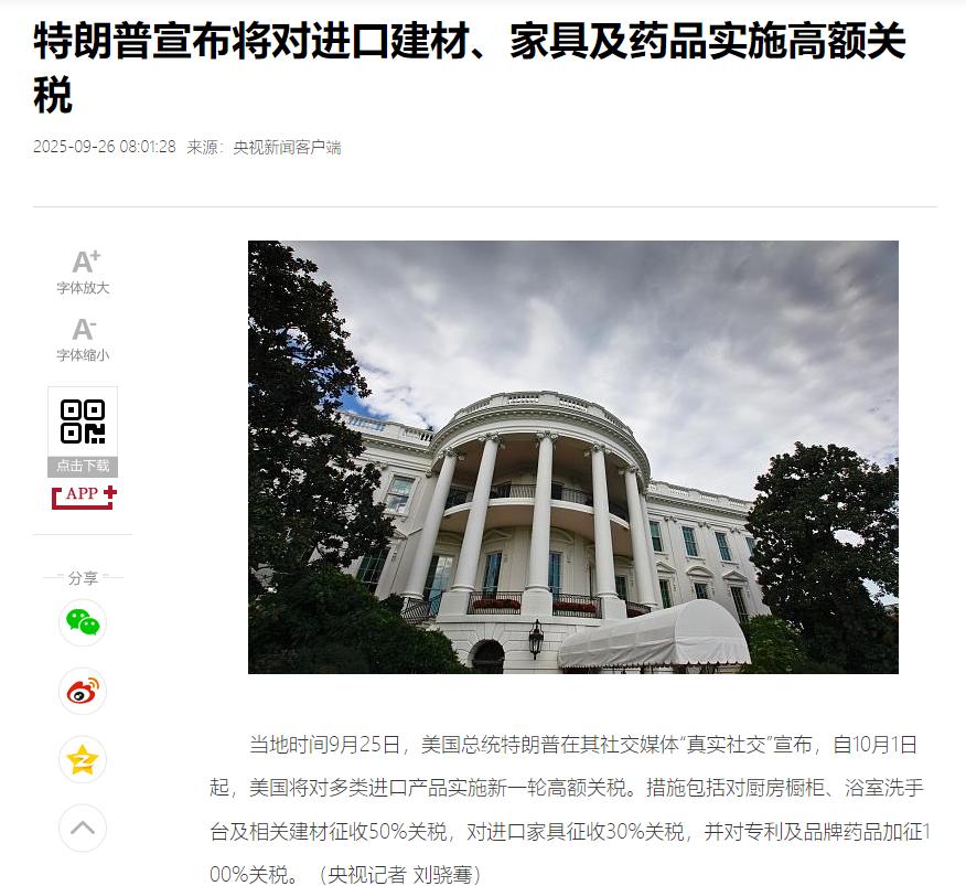 突发消息一出,许多人简直不敢相信自己的眼睛。 特朗普竟然宣布,从2025年10月1日起,美国将对厨柜、浴室柜征收50%关税,对软垫家具征收30%关税。 他还给了一个听起来非常“高大上”的理由:国家安全。 这话刚出口,美国商会第一时间跳出来打脸:“这些家具建材大多从墨西哥、加拿大、越南进口,不是盟友就是合作伙伴,跟‘国家安全’沾边吗?” 抛开这些不谈,就说这厨柜是装碗筷的,沙发是用来葛优躺的,全是老百姓过日子的刚需品,难不成这些家具里能藏导弹零件? 再说了,美国早就是家具进口大国,2023-2024财年光进口家具就花了271.4亿美元,本土早就没多少完整生产线了——现在喊“国家安全”,说白了就是拿大帽子遮羞,谁看不明白啊? 那特朗普到底图啥?说白了就是选举前的“票仓收割术”!这些年美国制造业外流,家具、重卡行业的蓝领工人是他的核心支持者,尤其是铁锈地带的选民,最吃“制造业回流”这套。 眼看要竞选了,拿关税当幌子喊“保护本土就业”,就是想把这些选票攥手里。 这招他熟得很,之前对钢铁、药品加税也是这套逻辑,先摆姿态,再拿关税当筹码讨价还价,算盘打得比谁都精。 可这税一征,最先倒霉的还是美国老百姓。 美国劳工统计局数据显示,8月家具价格已经涨了4.7%,这50%、30%的关税一加上,年底怕是要飙到两位数。 经济学家早算过账:关税成本大概三分之二会转嫁给消费者,普通家庭装修一套房子,光厨柜浴室柜就得多花几千美元! 达拉斯有个做大理石家居的商家,现在客户订了货她都没钱提货;洛杉矶的家具店更无奈,只能加10%的“关税附加费”,老客户跑了一大半——这哪是保护民生,分明是掏老百姓钱包啊!比老百姓更急的是美国盟友。 墨西哥、加拿大都是北美自贸协定成员国,之前为了维护供应链,两边磨合了多少年,现在平白无故被加税,换谁都得火大。 更讽刺的是,几个月前特朗普刚给日本汽车降关税,转头就对加拿大、德国的重卡和家具下手,这“双重标准”玩得溜,把盟友当冤大头宰呢?越南更惨,本来靠出口家具赚点辛苦钱,现在关税一涨,订单都往埃及、肯尼亚这些低关税国家跑,小工厂都快撑不下去了。 往深了说,这事儿还得搅乱全球家具供应链。 美国先锋家具这些本土企业,零件得从泰国、巴西进口,现在关税说涨就涨,采购计划全乱了;荷兰有家家居品牌为了避税,只能把大额订单拆成小单发货,活生生把顺畅的贸易做成了“地下工作”。 还记得2018年特朗普那波关税操作吗?直接让美国制造业PMI跌了2个点,消费者信心指数创三年新低——现在这是要重蹈覆辙啊!说到底,这根本不是“国家安全工程”,就是场拿经济当赌注的政治秀。 特朗普心里门清:家具、重卡这些话题能精准戳中选民神经,至于加税带来的通胀、盟友不满、供应链混乱,都是可以暂时抛在脑后的“小事”。 可问题是,靠关税保护的本土企业,哪有动力搞创新?盟友寒了心,以后谁还跟美国合作?老百姓钱包被掏空,最后真会把票投给他吗?咱聊实在的:你觉得这波关税最后会落到谁头上?是美国企业扛着,还是老百姓买单?那些被当冤大头的盟友,会不会反过来给美国使绊子?评论区说说你的看法,咱接着唠!