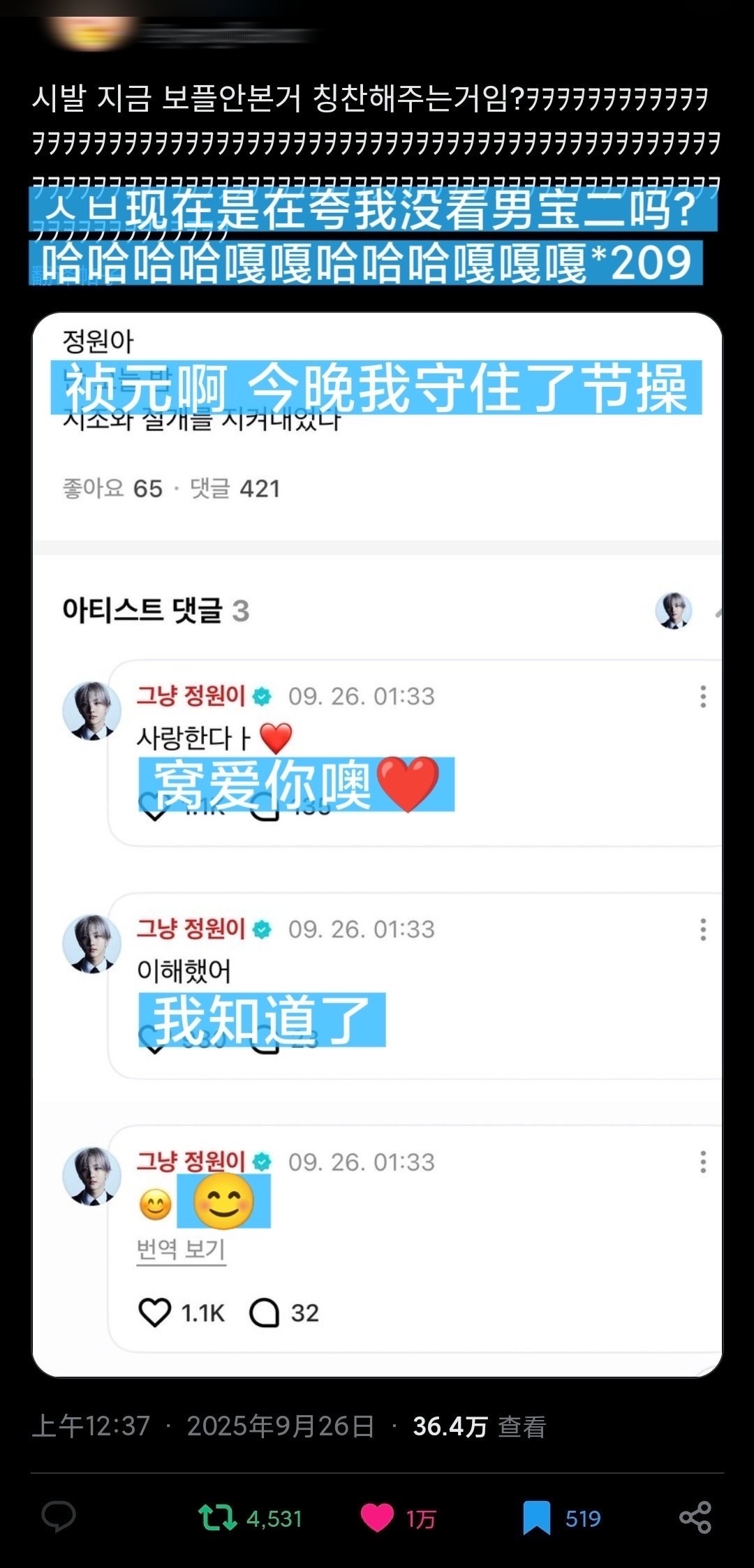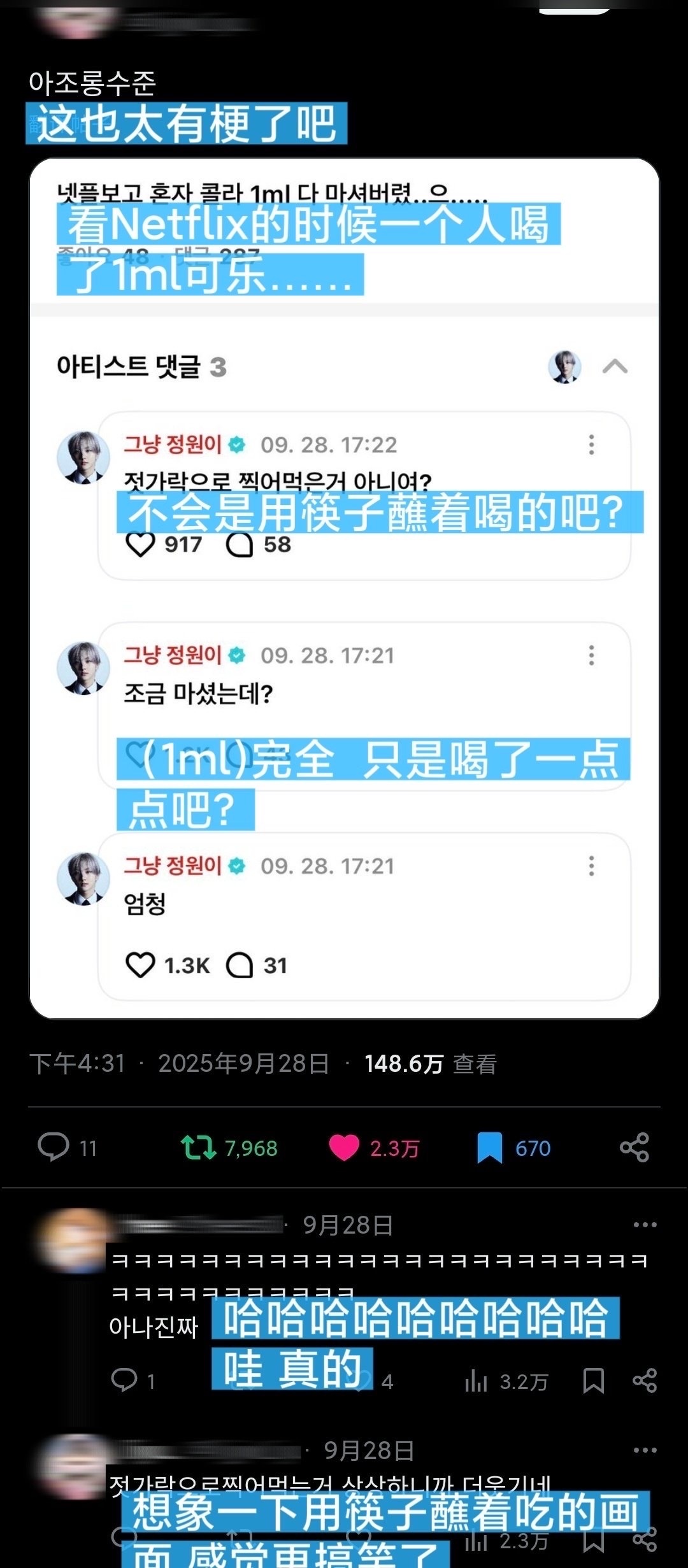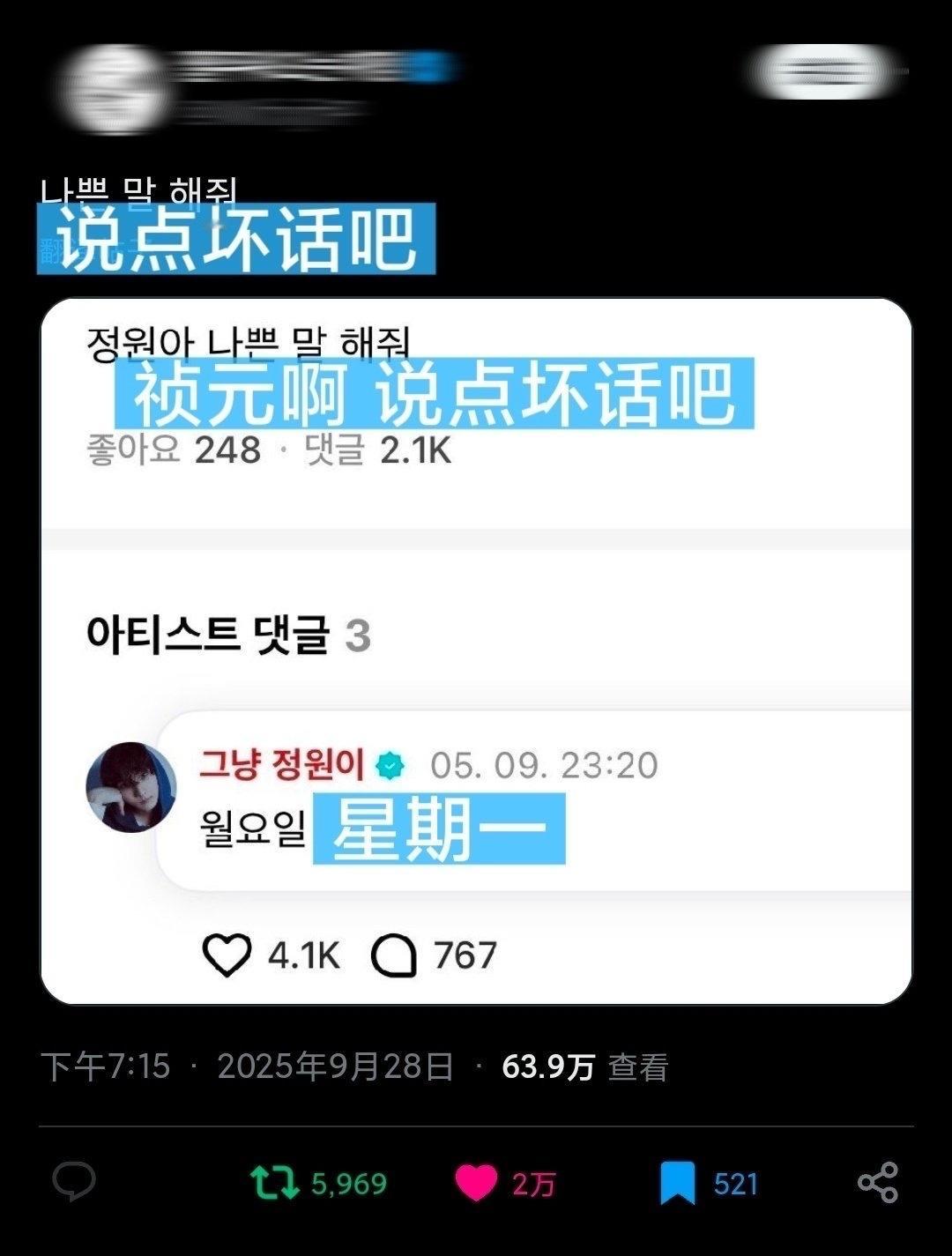 最近因为weverse高质量回复引发多条韩推热赞的sense精梁祯元,不仅宠粉还