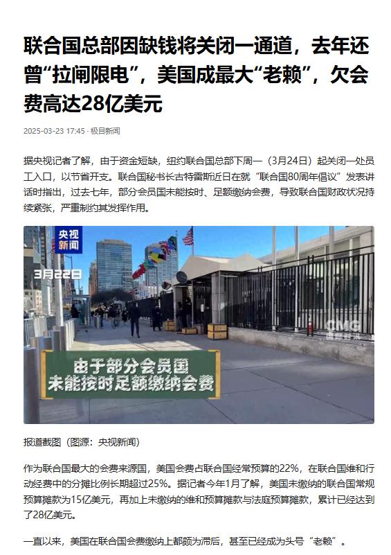 直接省略中国?联合国要“搬家”,最新迁址决定,古特雷斯正式敲定,惊动了国际?先说为啥会传“搬家”这事儿。 美国这些年拖欠联合国会费都快28亿美元了,占全球总欠款的七成以上。 要知道美国作为世界第一大经济体,该承担联合国常规预算的22%和维和预算的27%,这点钱对他们来说根本不算啥,2025年美国军费都超过9000亿美元了,欠的会费还不到军费的0.4%,就是故意拖着不交。 美国这种“老赖”行为直接导致联合国陷入了严重的财政危机。 联合国内部甚至不得不考虑将37亿美元的预算削减20%,还可能裁减约6900个岗位。 更夸张的是,联合国日内瓦总部之前就因为电费缺口,不得不关闭了4周,连自动扶梯都停用了。 没有钱就没有行动能力,维和任务和人道援助这些核心工作都受到了直接影响。 但这还只是问题的一面,美国作为东道主,还时不时利用签证手段给其他国家代表团设置障碍。 俄罗斯代表团就多次吃过亏,他们的外交官甚至内政部长都曾被美国拒签,无法参加联合国会议。 这种把签证当武器的做法,让很多国家心里都憋着一股火,觉得联合国设在美国已经影响了其公正性。 所以俄罗斯这几年一直在推动联合国总部迁址的讨论,建议搬到瑞士或奥地利这类中立国家。 俄方说得挺直白:美国绝不会同意搬迁,因为这样他们会失去滥用东道国特权的机会,以及联合国总部设在纽约每年带来的约50亿美元收入。 不过搬迁这事儿说起来容易做起来难,根据1947年的协议,迁址需要至少三分之二的成员国同意,而目前西方国家和美国盟友显然不会支持。 2025年有一次相关投票,结果以60票反对、18票支持告负,这说明迁址提议在政治上还远远不成气候。 更离谱的是,这种严肃的国际议题居然还被诈骗团伙利用过。 2019年西安有家公司以“联合国总部将搬迁至西安”为名进行诈骗,声称新总部占地216平方公里,投资26500万亿人民币,还正儿八经地开了个“设计研讨会”,骗了近200万元。 这种荒诞剧的发生,也侧面反映了联合国公信力受损后,各种谣言和骗局更容易滋生的现实。 其实联合国自己也清楚问题所在,2025年3月启动了“联合国80周年改革倡议”,考虑将部分机构从纽约迁至内罗毕等成本较低的地点。 但这只是成本考量,真正要解决的是结构性矛盾。 埃及前外长纳比勒·法赫米说得挺到位:联合国需要的是基于能力的改革,而不仅仅是财务调整。 说到改革,中国作为负责任的大国,一直按时足额缴纳会费。 虽然网络上曾流传过所谓“92国提议将联合国总部搬入中国”的消息,但中国对此保持了清醒的态度。 中国明白,全球问题需要全球合作解决,而不是简单地把联合国总部从一个国家搬到另一个国家。 联合国成立80周年了,这个多边平台虽然程序繁琐,但仍然是现有最好的国际合作机制。 迁址话题表面上是讨论地理位置变更,本质上却是关于国际秩序重构的深刻博弈。 美国继续拖欠会费,俄罗斯持续提出迁址建议,发展中国家不满情绪增长——这些现象都指向同一个结论:联合国改革已经迫在眉睫。 但改革方向应该是增强代表性和效率,而不是陷入迁址这种短期内无解的政治象征性议题。 大家怎么看这个问题?欢迎在评论区分享你的观点。