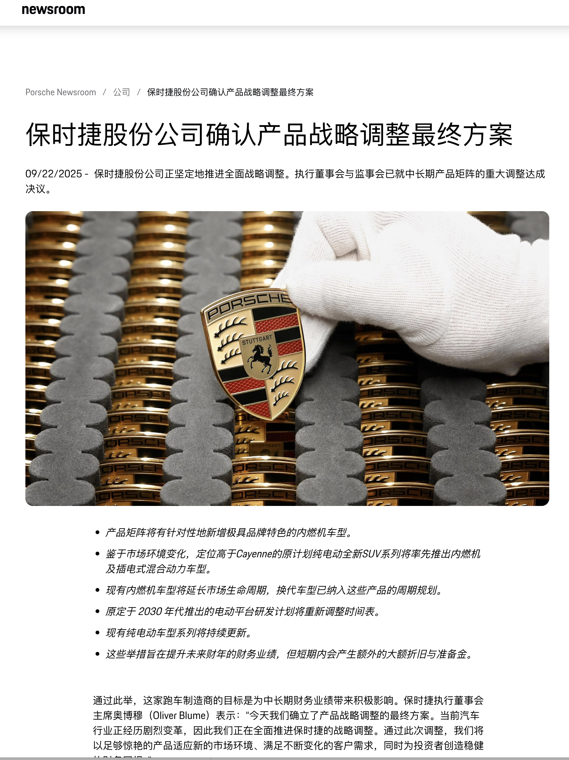 再加上,德国总部,竟然放缓了纯电的步伐。你不能因为技术不够好、市场销量不行,就不敢继续烧钱,加码纯电。短期看,可能会为“投资者创造稳健的财务回报”。长期看,一个汽车品牌在纯电技术上不够精进,是没有希望的,会泯然众人矣的。