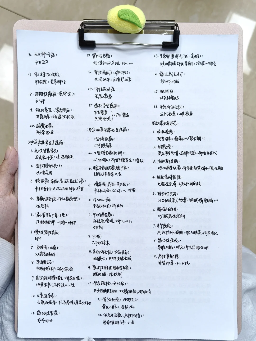 ✅这几天整理了消化、呼吸、心血管、神经、泌尿、内分泌、皮肤的部分临床和考试常见的首选药,大三学的药理都有点忘得差不多了hhh ➡️无水印扫描版在后面3张呀(*`▽´*) - 💬在消化内科三周的轮转结束啦,科室氛围很轻松,基本没什么活,每天跟查房学点东西就好。接下来要去血液科待一周,不知道会学到些什么 先期待一下新生活吧(´▽`)ノ (我的名字和简介终于找回来了!!)