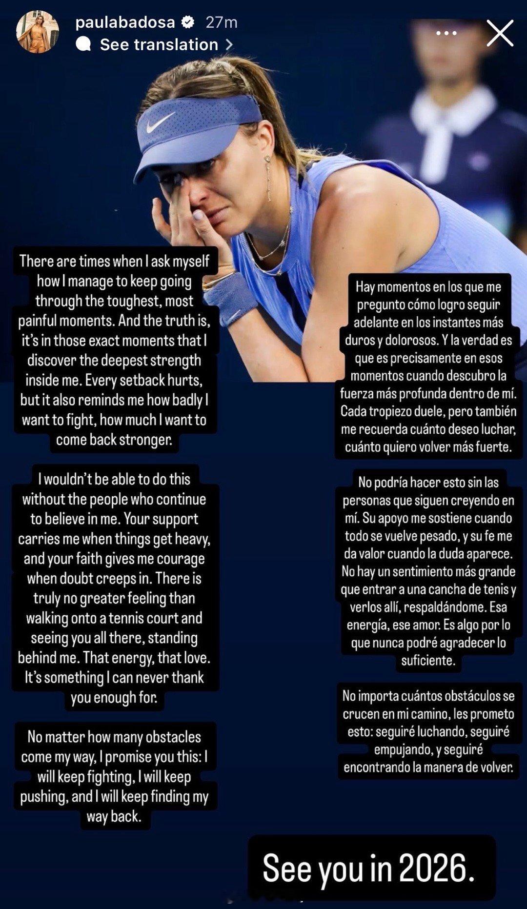 巴多萨宣布提前结束2025赛季,2026见网球talking大会热点现场