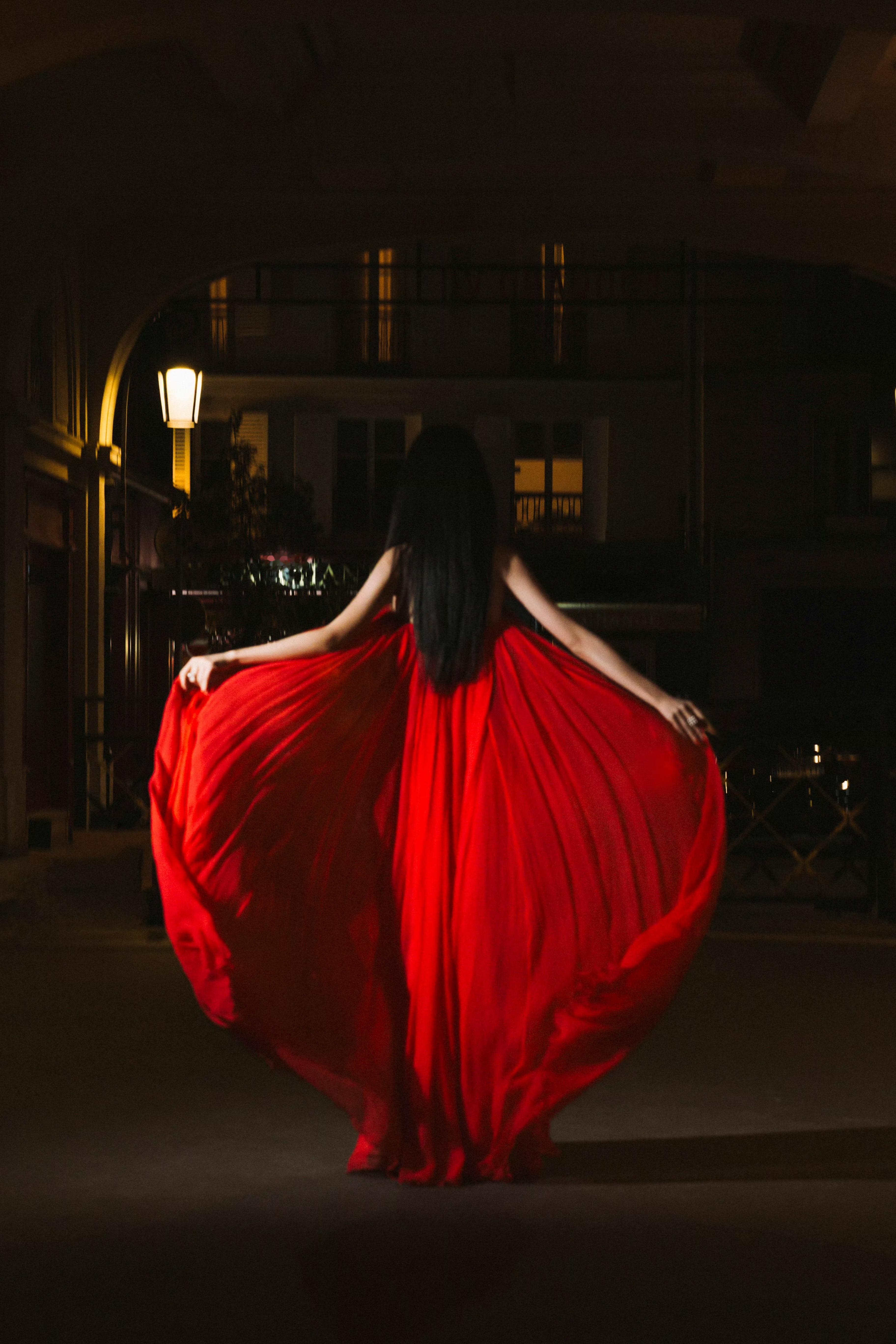 周也身穿Ronald van der Kemp 2019秋冬高定柔纱红裙亮相2026春夏巴黎时装周,并登台走秀