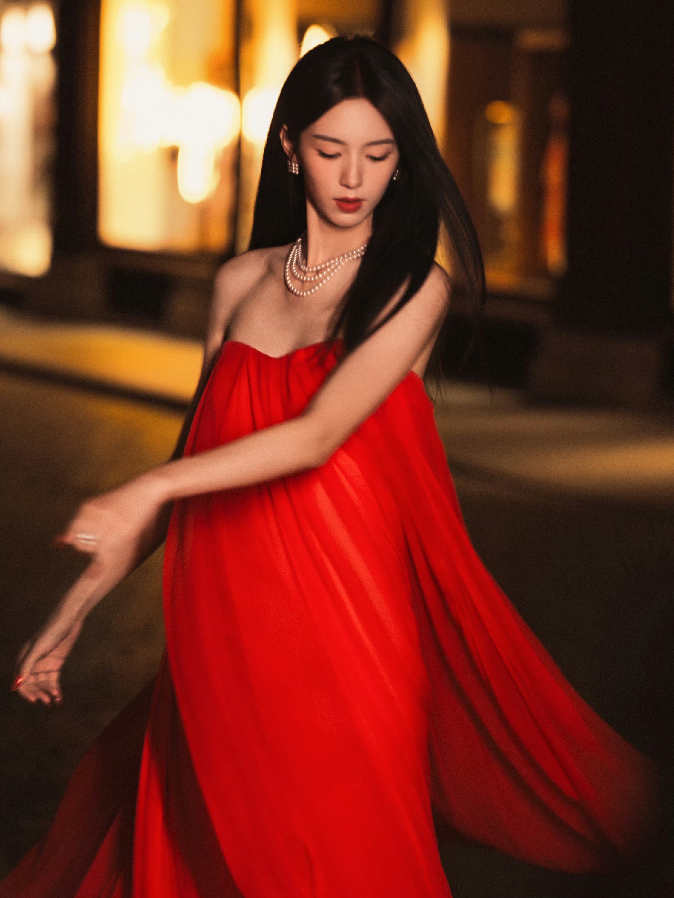 周也身穿Ronald van der Kemp 2019秋冬高定柔纱红裙亮相20