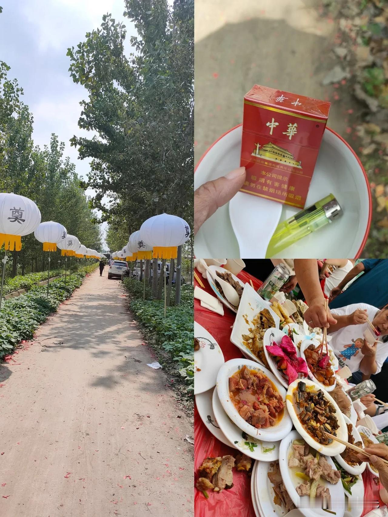 现在农村老人办丧事,那排场和以前可太不一样了! 今天去参加同学母亲去世宴,从大马路到他家门口,一公里的路两边,整整齐齐挂了上百个带“奠”字的白灯笼,老远看过去特别显眼。 随礼现在一般都是500,去了还每人发个碗、一个打火机,外加一包中华烟(我们这里的风俗)酒席也不含糊,两瓶白酒、两包烟是标配,十几个凉菜,还有三十多个热菜、炒菜,水果、点心、汤一样不落,(以前也是这样,只是现在菜的档次比原来高很多)搞得一点都不比城里酒店办的差,份量还是一如既往的那么多菜多得都吃不完。 社会在进步,农村办酒席真的跟以前不一样了,原来买菜500一桌的现在最少都要800,还不连人工,烟酒饮料…… 你们那里办酒席是什么样的?评论区聊聊 农村请人办酒席 农村丧事 农村人丧事习俗