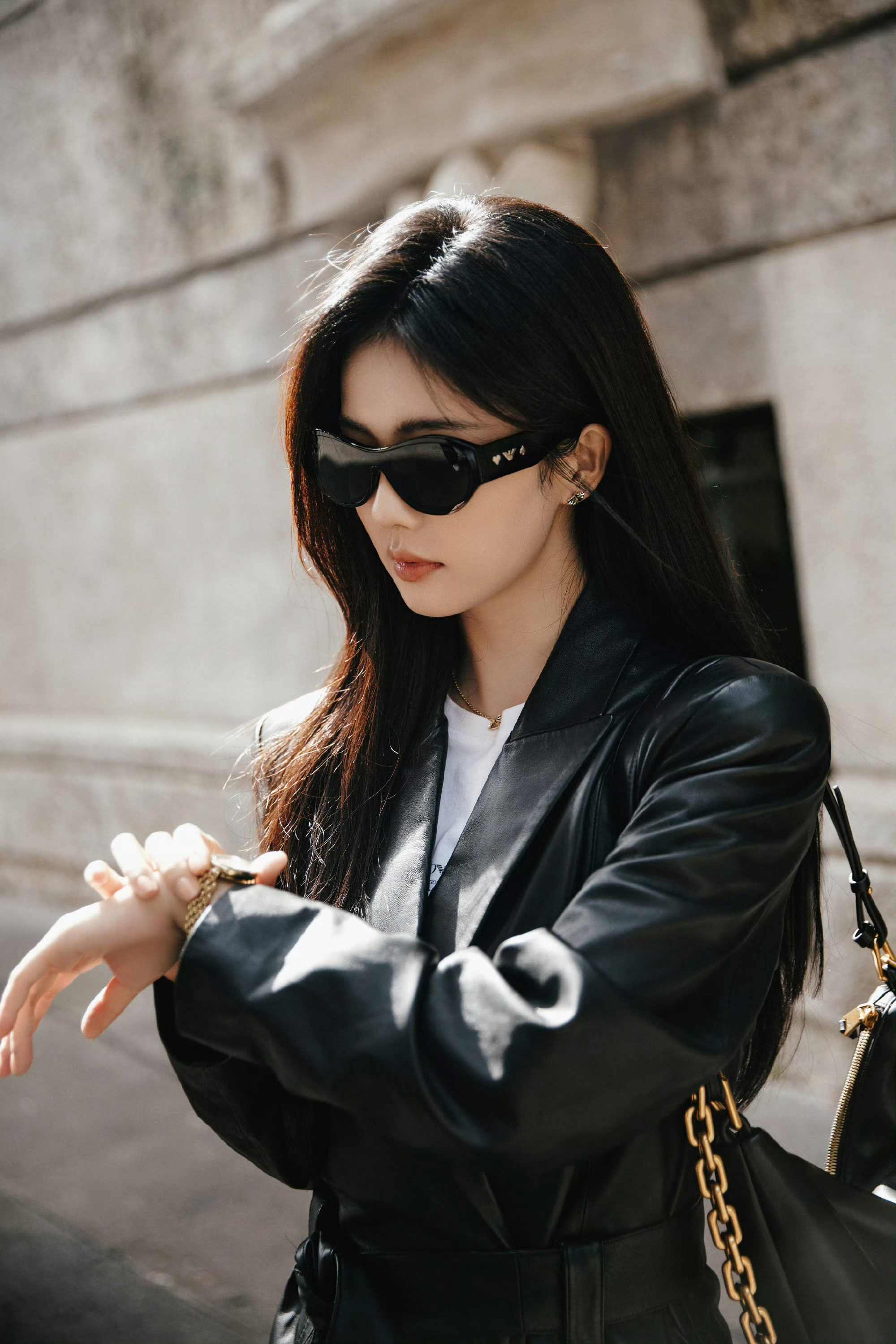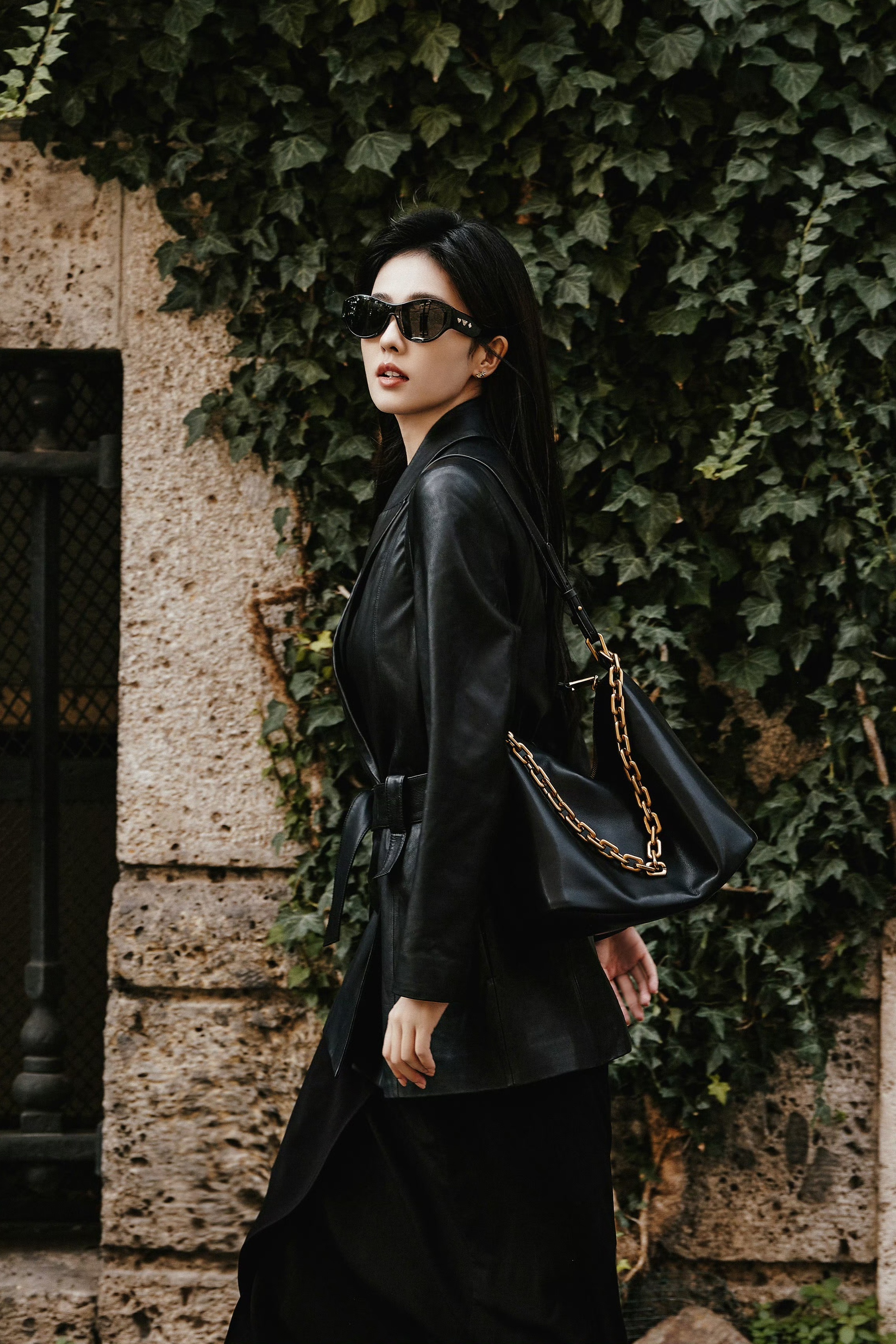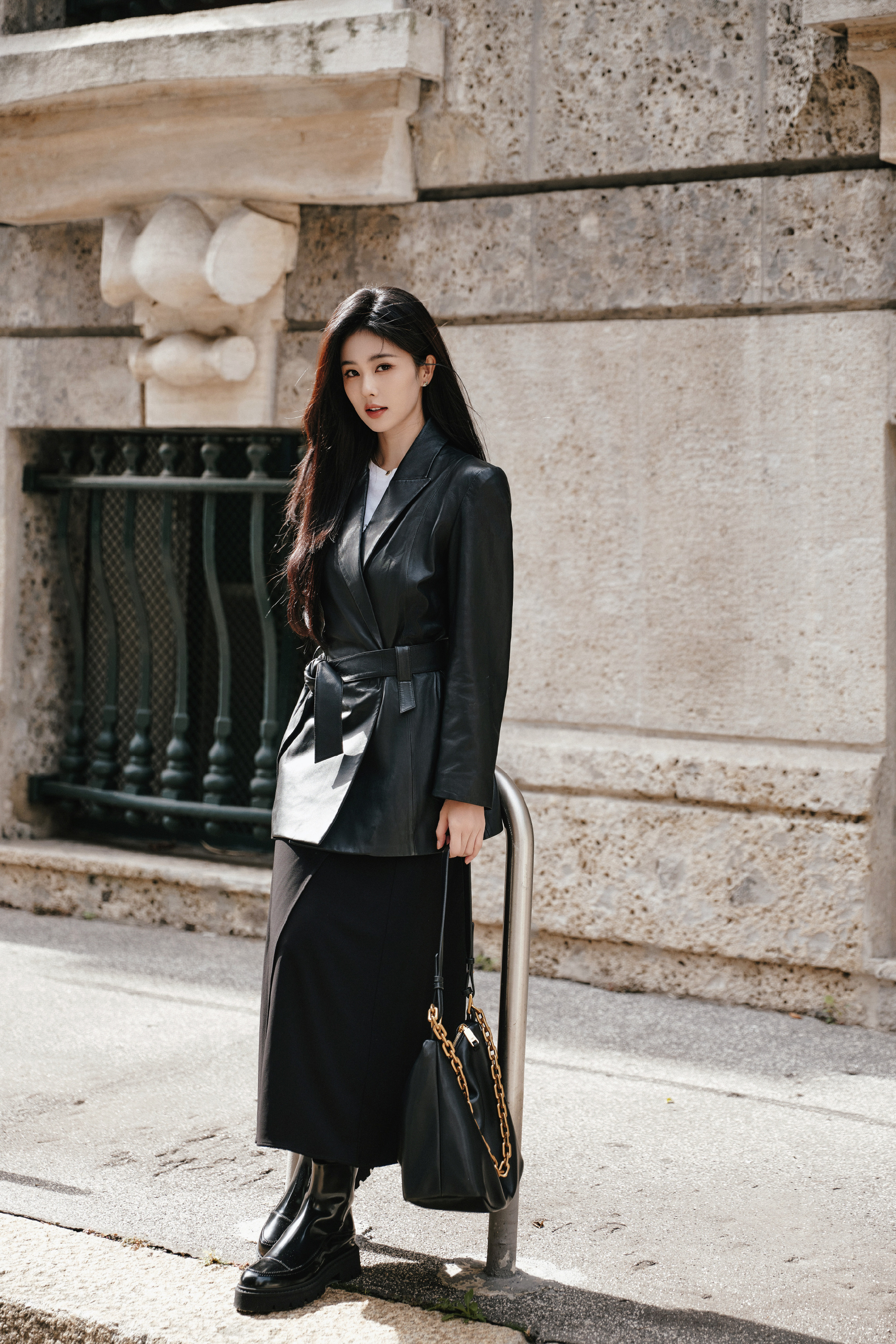 张予曦一袭立体花瓣长裙亮相巴黎时装周