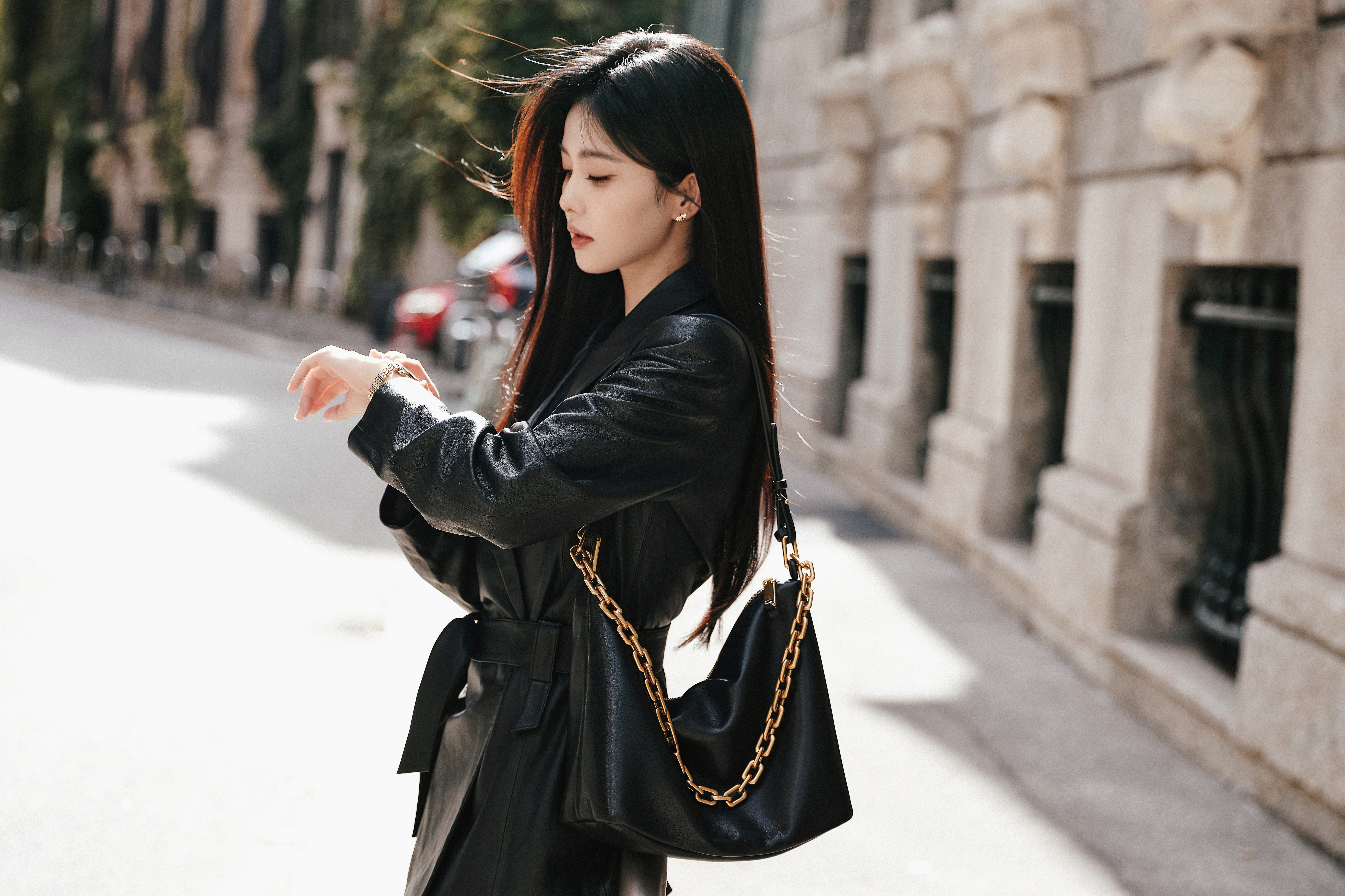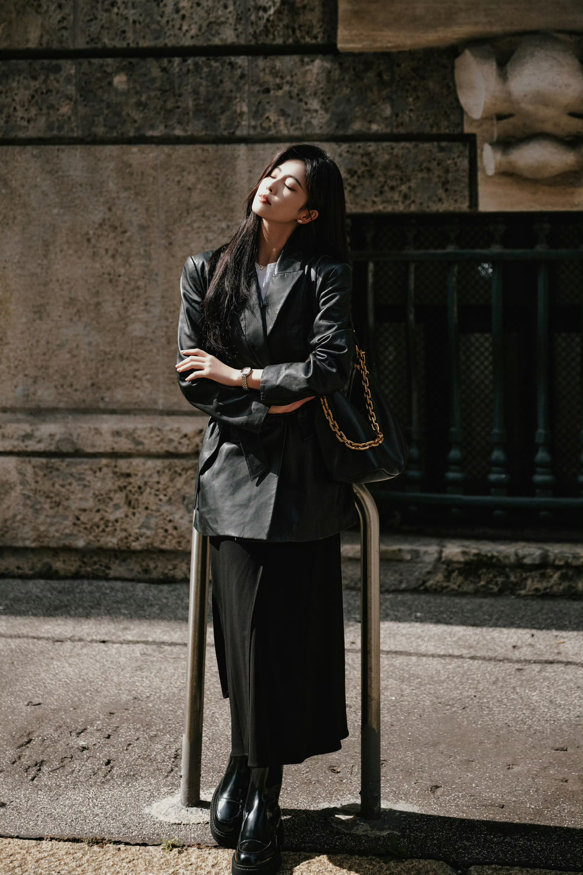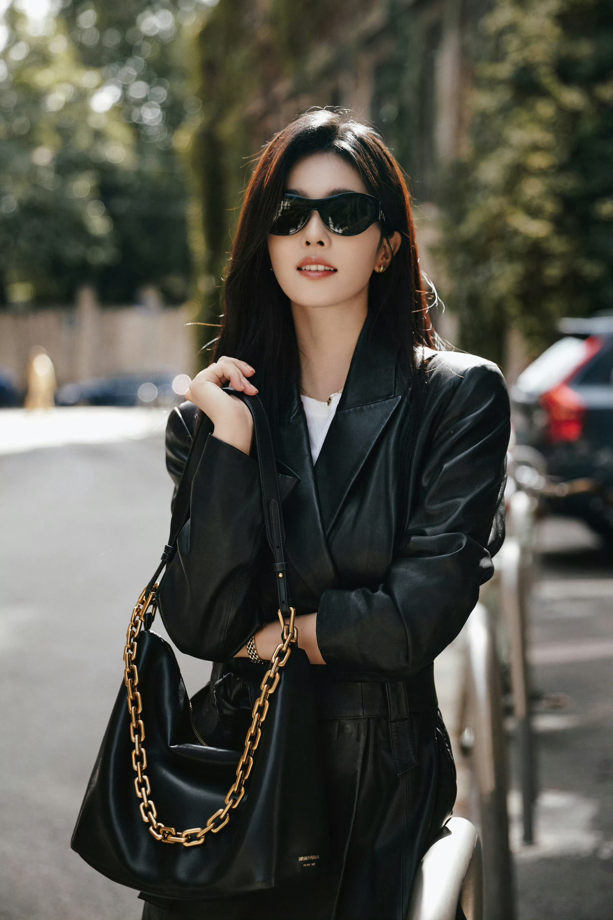 张予曦一袭立体花瓣长裙亮相巴黎时装周
