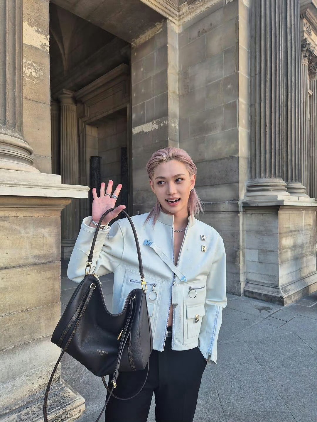 巴黎时装周lv大秀Lisa给李龙馥拍照📸