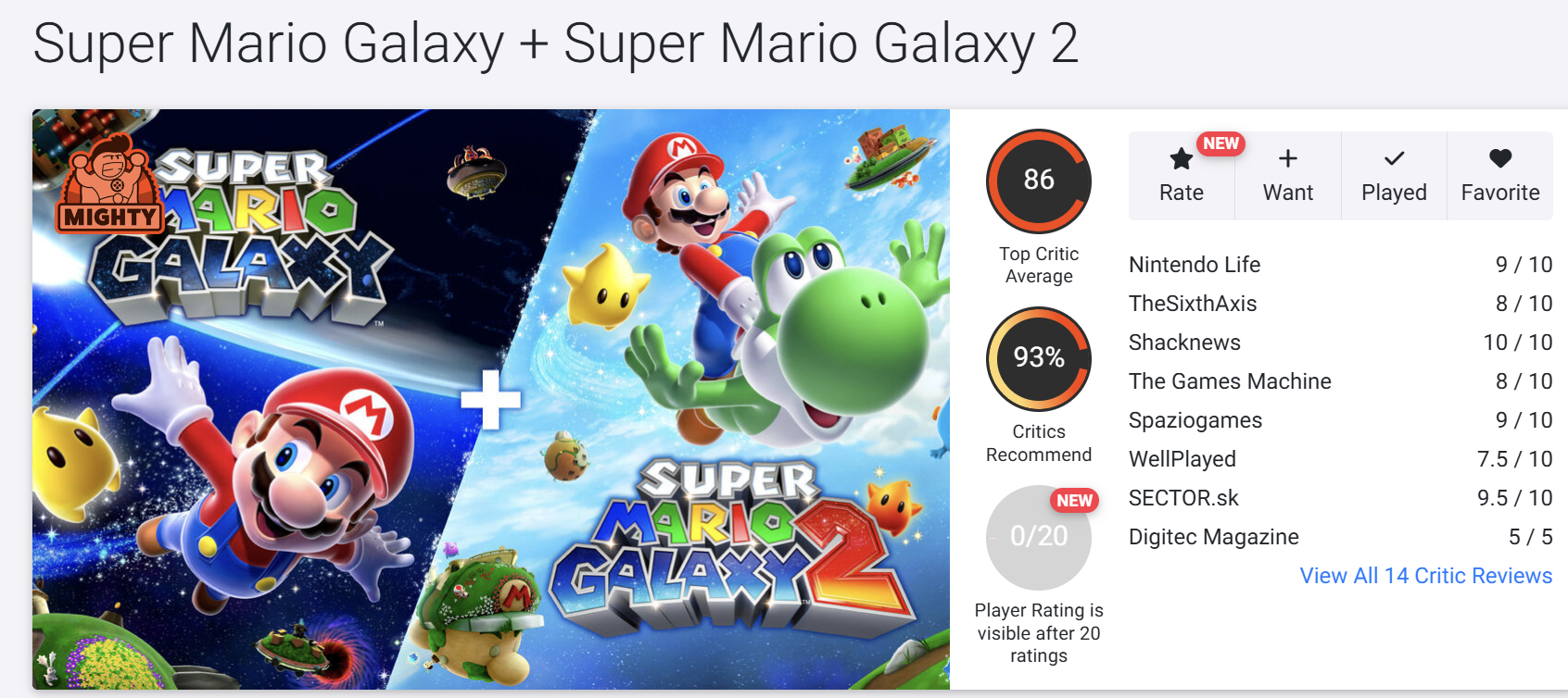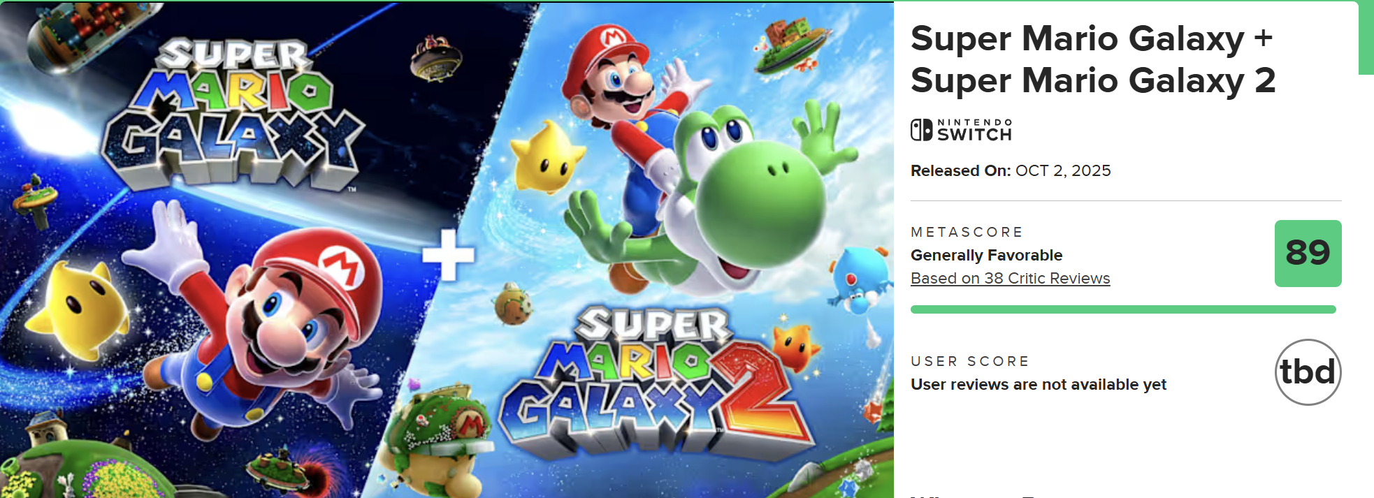 【《超级马力欧银河1+2》M站媒体评分出炉:89分】