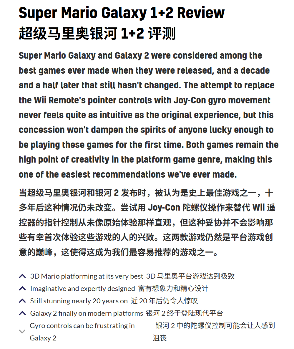 缺点则是:《超级马力欧银河1+2》的Joy-con陀螺仪操作可能会让人感到沮丧。