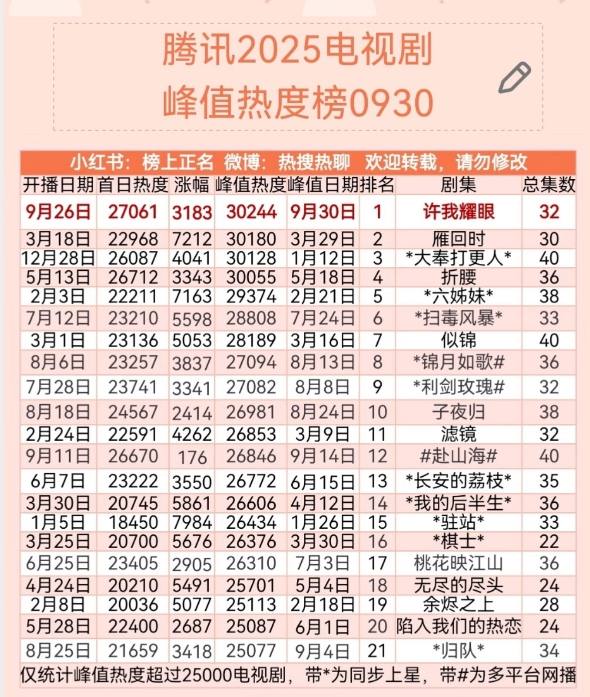 许我耀眼今天站内热度30477摸高拿下的是2025年峰值热度冠军,无横盘的依旧美丽…