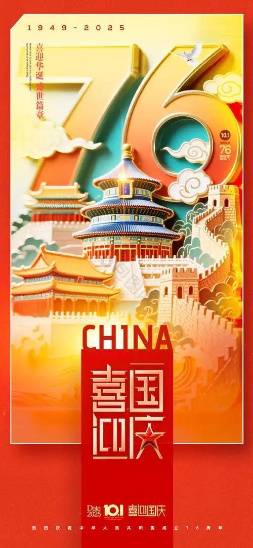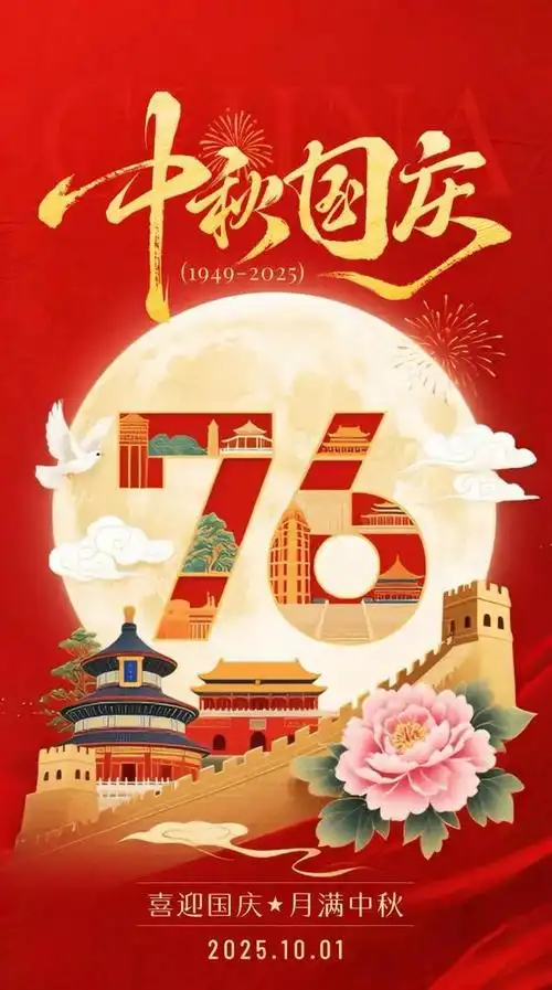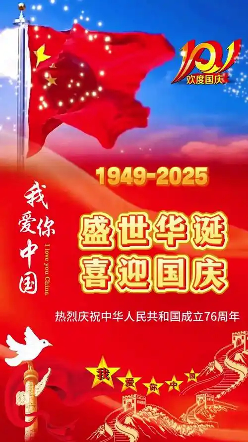 金秋十月,盛世华诞。今日我们迎来来人祖国母亲76周岁的生日,在这举国同庆的日子里,祝福我们伟大的祖国永远繁荣昌盛、国泰民安!愿山河锦绣,岁月峥嵘,愿每一位中华儿女幸福安康。让我们一起为祖国喝彩,共同祝愿明天更美好!国庆节快乐!国庆节 国庆中秋双节同庆 欢度国庆