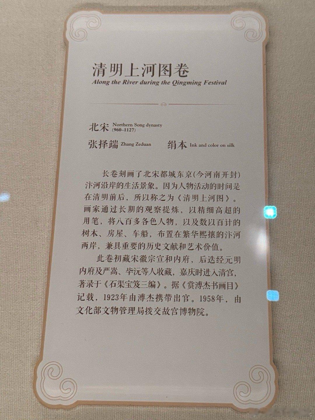 故宫很难,文物也很难。千年的古书画,保存第一,所以展出时间不宜太长。这次几幅千年名作,如东晋王珣伯远帖,北宋黄庭坚诸上座帖等,都是只有15天展期。由于清明上河图十年展出一次,机会太难得,故宫也希望让更多的观众能亲眼得见,所以清明上河图的展期足足有30天,为了让国宝保持最好的状态,故宫在这个独立展柜上做了很大努力,希望在展览期间一切都好。