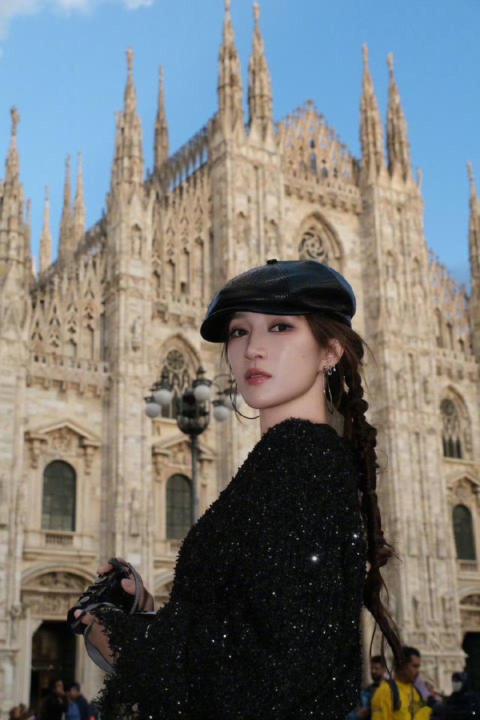 孟佳站在米兰大教堂前,光影交错间宛如电影女主角,每一帧都美得像壁纸,导演们快给姐