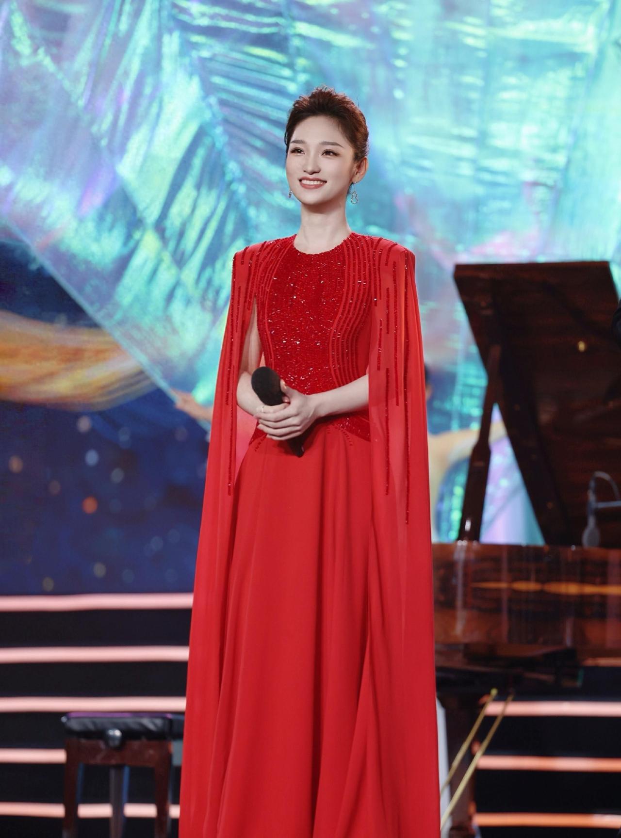 董卿“接班人”终于亮相了!9月28日备受瞩目的大湾区晚会上,32岁蓝羽稳站C位脱颖而出,连叶童和苏有朋都被她抢光了风头~ 近日,一场2025“湾区升明月”电影音乐晚会,让观众重新认识了央视美女主持人蓝羽!虽说晚会状况百出,但她临危不乱的极限救场却让人印象深刻,主持功底更是碾压全场!特别是,被赞端庄大气不是网红脸,超适合春晚的她,主持风格竟颇有点董卿灵动知性那味儿,可音色却像极了周涛,笑起来眉眼弯弯超有感染力,全身都散发出一股子国泰民安范儿! 晚会上,一袭金色流苏珠片长裙稳站C位,气场全开!修身高腰落肩设计,将她纤细曼妙好身材展现得淋漓尽致,配上一头简约盘发和闪耀的复古风顼链,美得格外吸睛又养眼!难怪一登台就成功将同台老牌明星叶童,苏有朋,还有两位港圈主持都给比了下去,不愧是央视出品,果真是未来可期啊!
