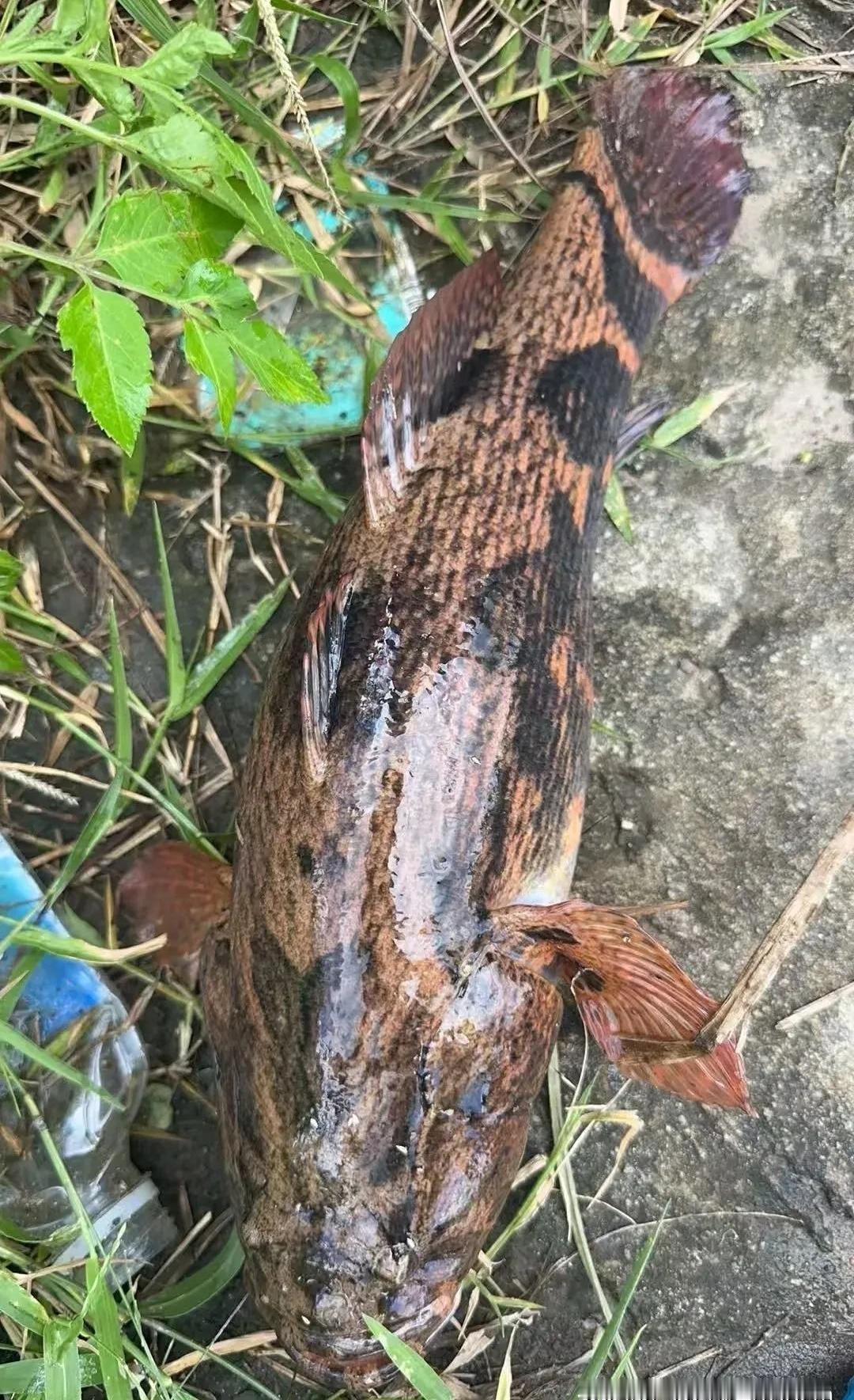 有钓友在河里钓上来一条怪鱼,身上花里胡哨的,黑的、棕的、红的斑点混在一起,自己也
