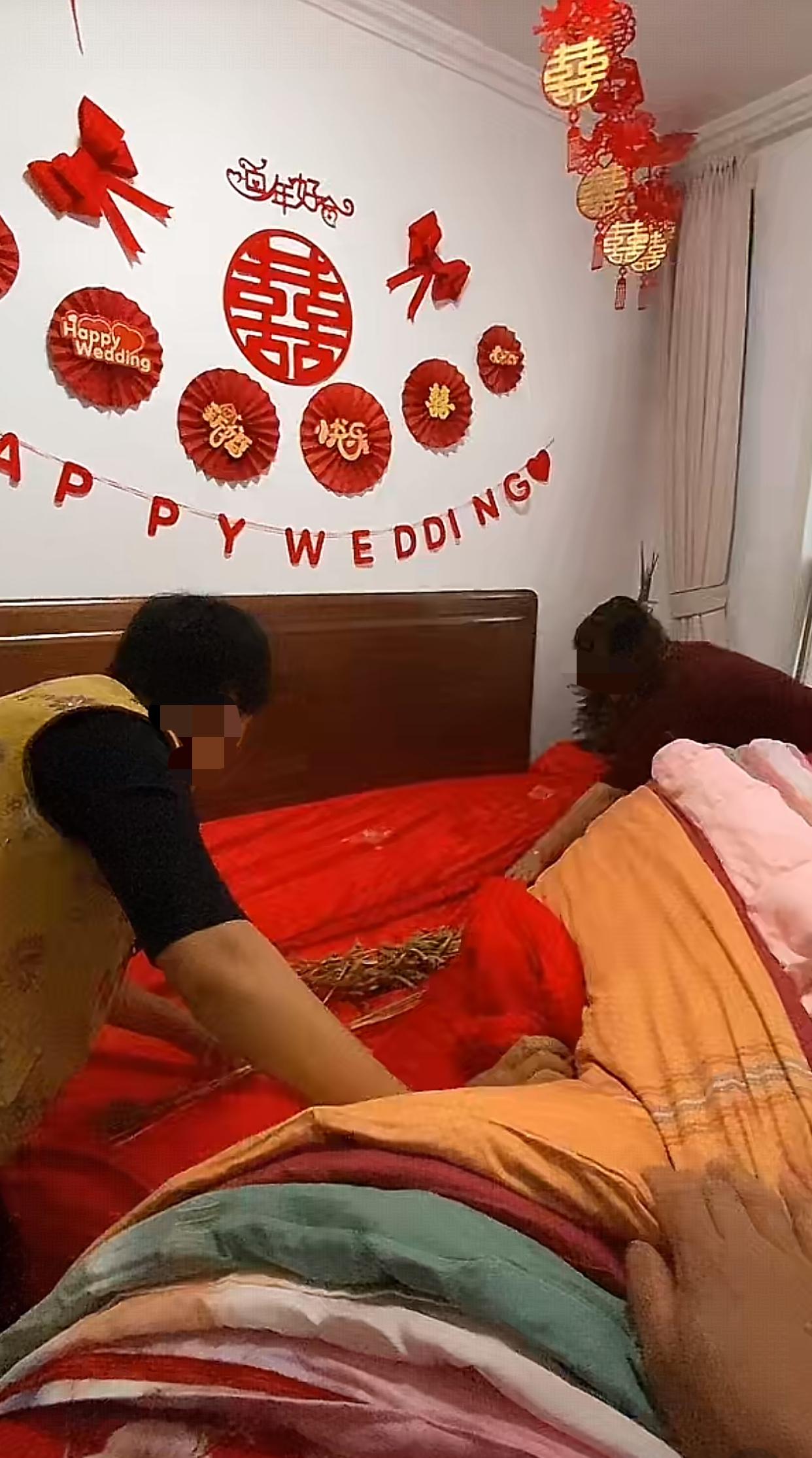 刚刚在一个直播间里看到,几个人正在叠禧被,也就是结婚用的被子。这是一个传统文化,
