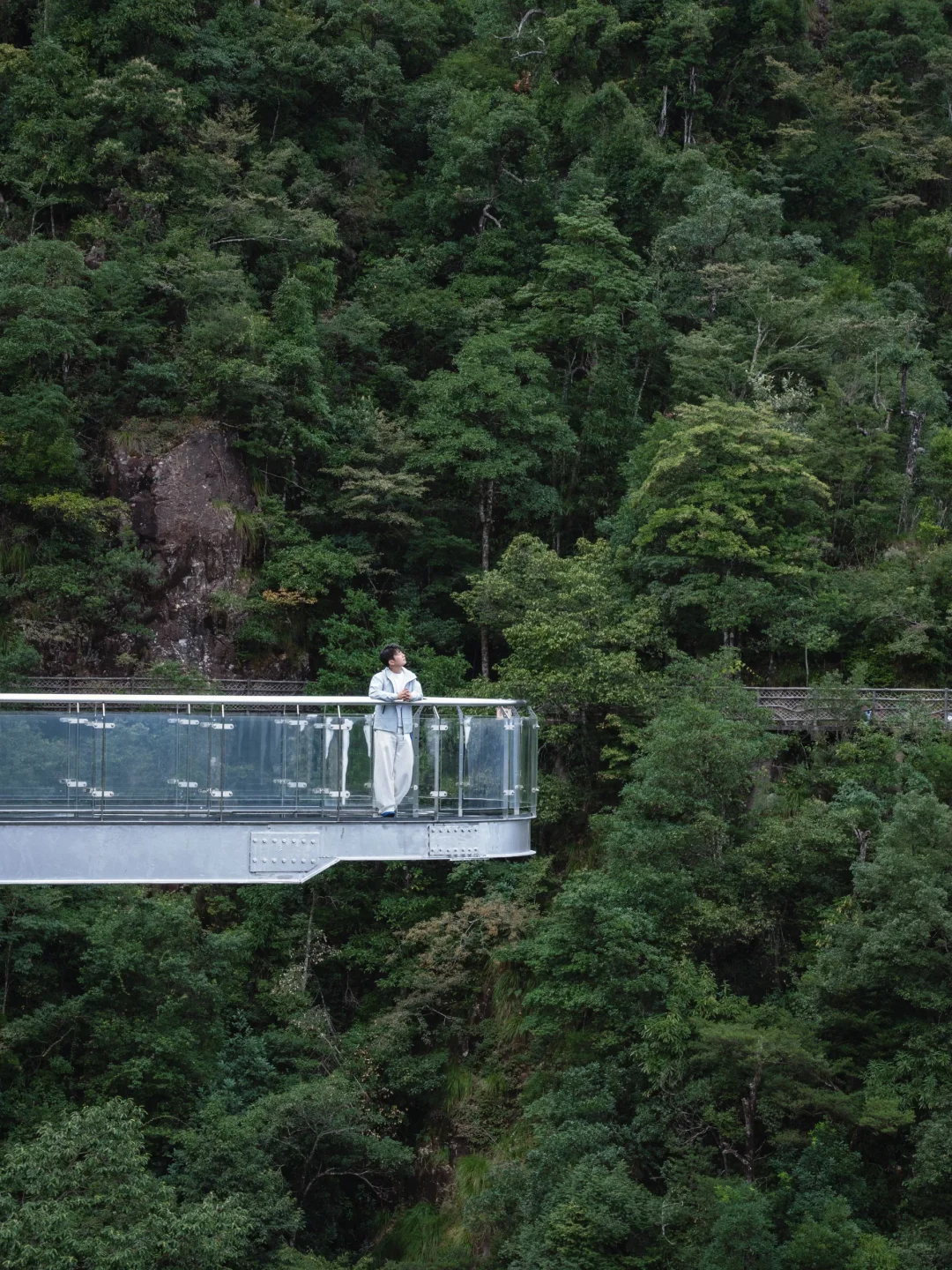 后悔没早点来 江西居然藏着这么一座宝藏仙山 虽名气不如黄山盛名在外 但却胜在清净悠闲 漫步山间可独享飞瀑深潭、怪石险滩、密林古树等诸多奇景 有种探寻原始森林的感觉 国庆不想人挤人 不妨来探寻三百山的感受户外徒步登山的快乐 - 📍地点:三百山景区 📌位置:赣州市安远县三百山镇 ⏰开放时间:8:00-17:00 🚘交通 ▪️飞机至赣州黄金机场后自驾或乘坐旅游专线 ▪️高铁至定南南站或赣州西站后,可乘坐旅游专线 Ps:安远县不好打车,建议自驾 - 🧗爬山路线 ✅线路A: 三百山游客中心-索道-福鳌塘-思源宝鼎-玻璃天桥-玻璃栈道-玻璃眺台-漫云栈道-东江第一瀑-思源亭-滴水观音-索道-三百山游客中心 ⌚️:游玩时间3-4小时 ✅线路B 三百山游客中心-索道-福鳌塘-思源宝鼎-玻璃天桥-玻璃栈道-玻璃眺台-漫云栈道-东江第一瀑-知音泉-龙潭-清心飞瀑-东风湖游船-三百山北门 ⌚️:游玩时间约6小时 ‼️游船在东风湖内码头坐船到达景区北门,北门有接驳车回南门停车场 - 📷拍照机位景点攻略 🌳知音泉 知音泉一路上都是溪流栈道,被古树遮蔽,仿佛穿越热带雨林一般 🌳玻璃天桥 目前江西最长的玻璃天桥,全长330米,横跨两山之间,视野绝佳,能俯瞰远处群山 🌳东江第一瀑 瀑布整体落差高达120多米,高低落差笔直交错,不禁感叹大自然的鬼斧社工 🌳漫云栈道 站在玻璃栈道上游览群山,感受林中漫步的惬意和松弛 🌳东风湖 全长7公里,游船约20分钟,乘船行驶在山水间,别有一番诗意 - 🏠食宿推荐 🔸景区门口就有酒店,周边也有很多便宜干净的酒店 🔸本地美食推荐:安远三鲜粉、客家酿豆腐、三百山豆腐花等 🔸上索道前有广场,可以买水吃饭,上山也有便利店 - ⚠️旅行tips 🔻游玩B线路建议提前一天到达,第二天一早上去,不然玩不完 🔻A线路从三百山游客中心主门进入 🔻穿一双舒适的登山鞋,带好登山杖充电宝等 -