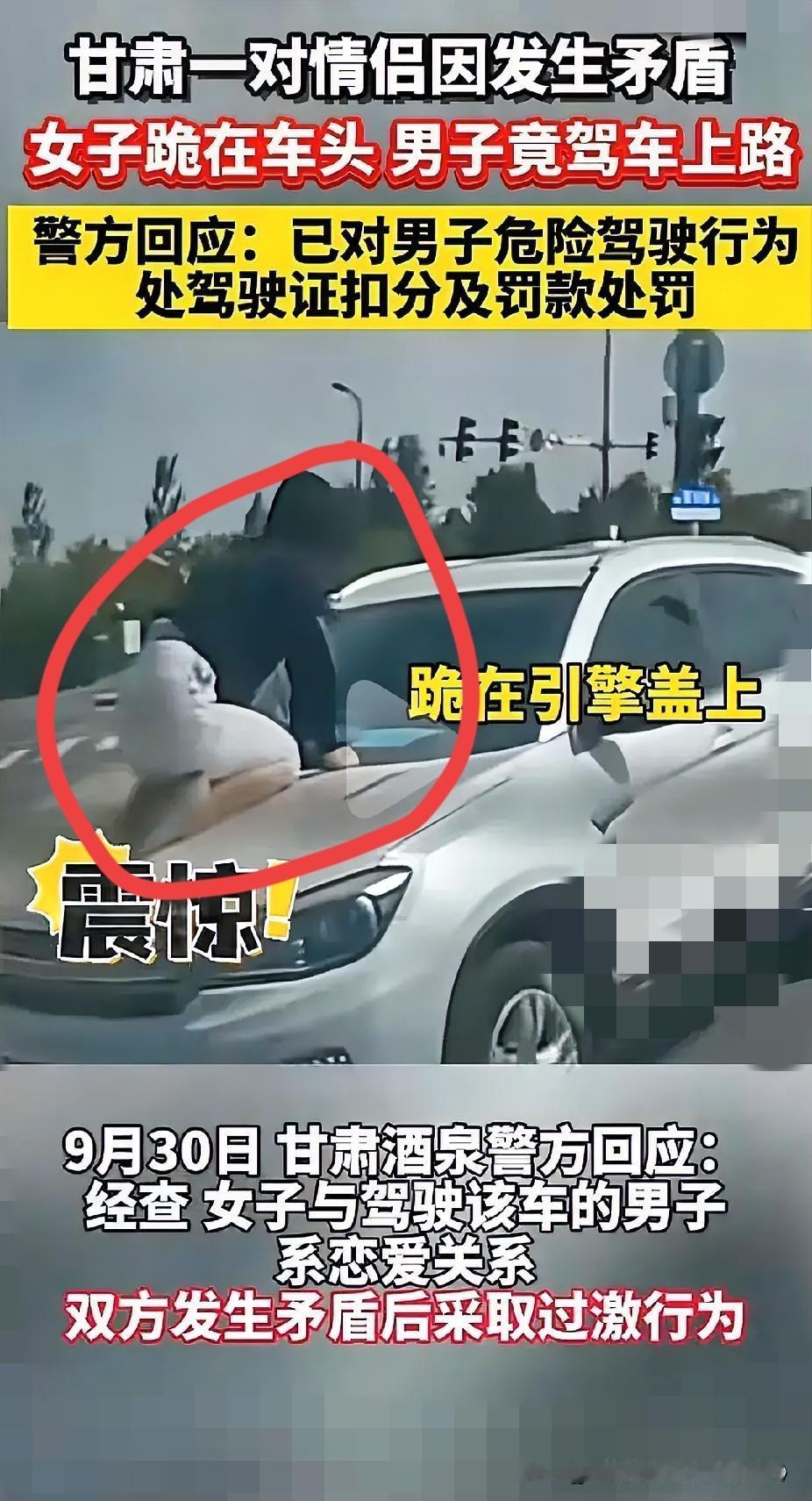 甘肃一对情侣发生矛盾 情侣闹矛盾能作到啥地步?甘肃这俩人把命玩成了“赌注”! 真不敢信我刷到的这事儿。 甘肃一对情侣吵起来。 女的赌气直接跪在了车上。 男的更离谱。 气头上居然开着车就上路了。 这哪是吵架啊。 这分明是拿自己和路上人的命当儿戏! 后来警方也回应了。 说已经对男的危险驾驶行为做了处分。 驾驶证扣分,还罚了款。 我看完真的满脑子问号。 俩人为了点矛盾。 一个敢拿身体堵气。 一个敢拿方向盘撒火。 就没想过万一出点事。 后悔都没地方哭吗? 其实看人啊。 真不用看平时多好。 就看遇到事的时候啥样。 利益面前,能看清一个人的人格。 诱惑面前,能看出一个人的品德。 对错面前,能知道一个人守不守规矩。 难处面前,更能摸清一段关系牢不牢固。 老话说得对。 世上有两样东西不能盯着看。 一个是太阳,晃眼伤眼。 一个是人心,看深了伤心。 这对情侣的操作。 不就是把“人心”里的冲动和自私。 明晃晃摆出来了吗? 我真觉得。 不管是处对象还是过日子。 “不冲动”都是最基本的底线。 再生气也不能拿安全开玩笑。 毕竟车一发动。 载着的不只是两个人的情绪。 还有路上所有家庭的平安。 你们说。 要是遇到这种容易冲动的另一半。 到底该咋劝才能让他冷静下来啊?两夫妻吵架