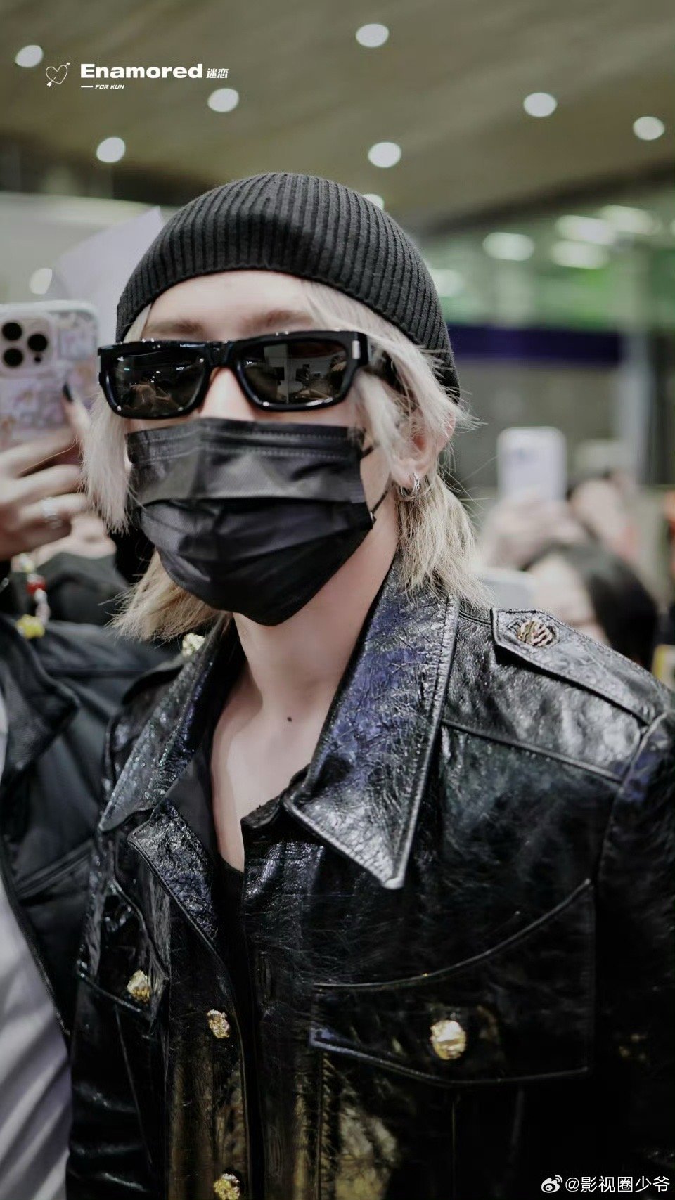 蔡徐坤巴黎排面好足 蔡徐坤落地巴黎排面拉满!粉丝簇拥等候,欢呼声穿透机场。黑色皮衣搭配经典配饰,银色发丝露出来超吸睛,高挑身形自带聚光灯,松弛状态拿捏时尚感。