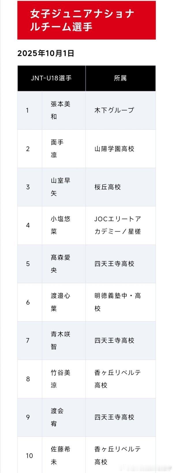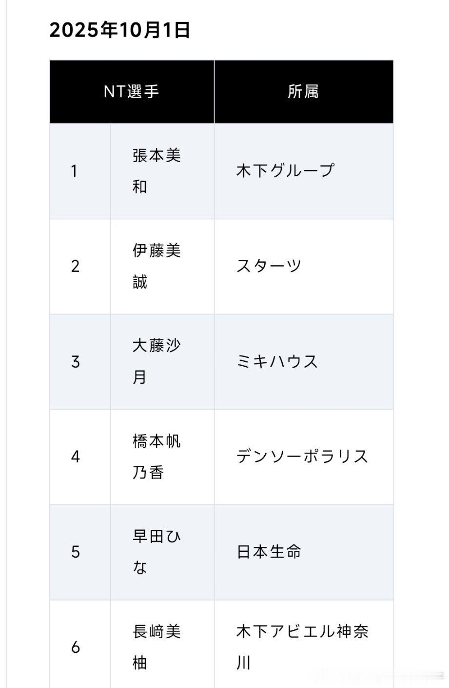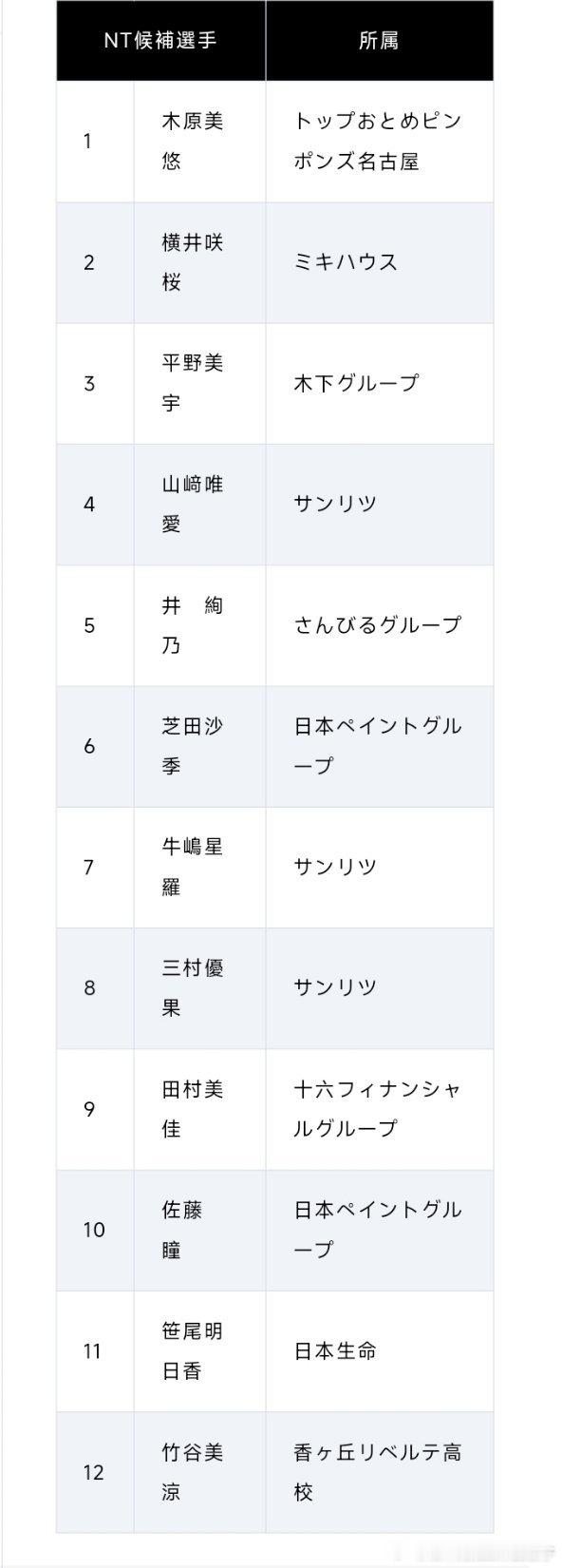 女子:张本美和、伊藤美诚、大藤沙月、桥本帆乃香、早田希娜、长崎美柚