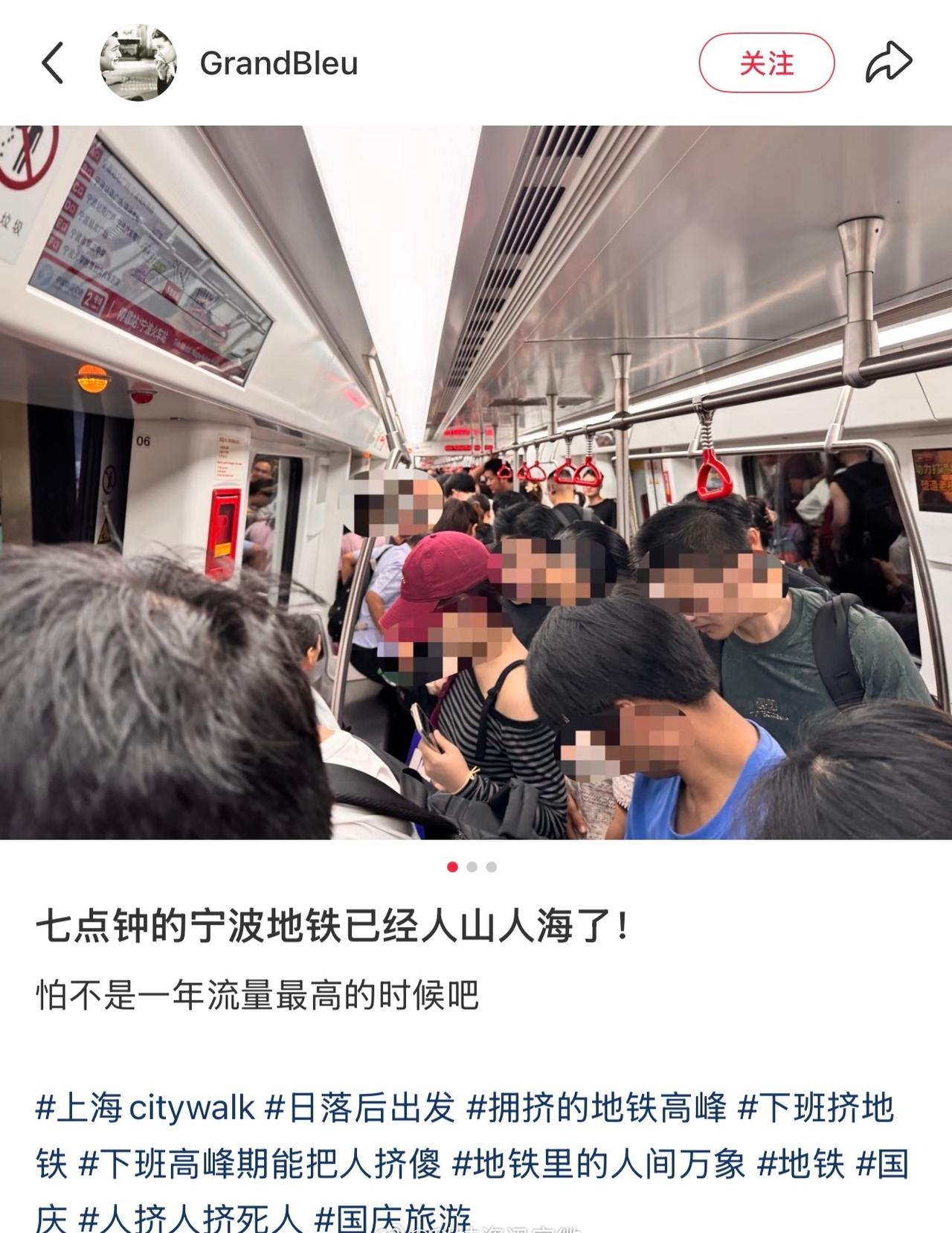网友“GrandBleu”发帖:七点钟的宁波地铁已经人山人海了!怕不是一年流量最