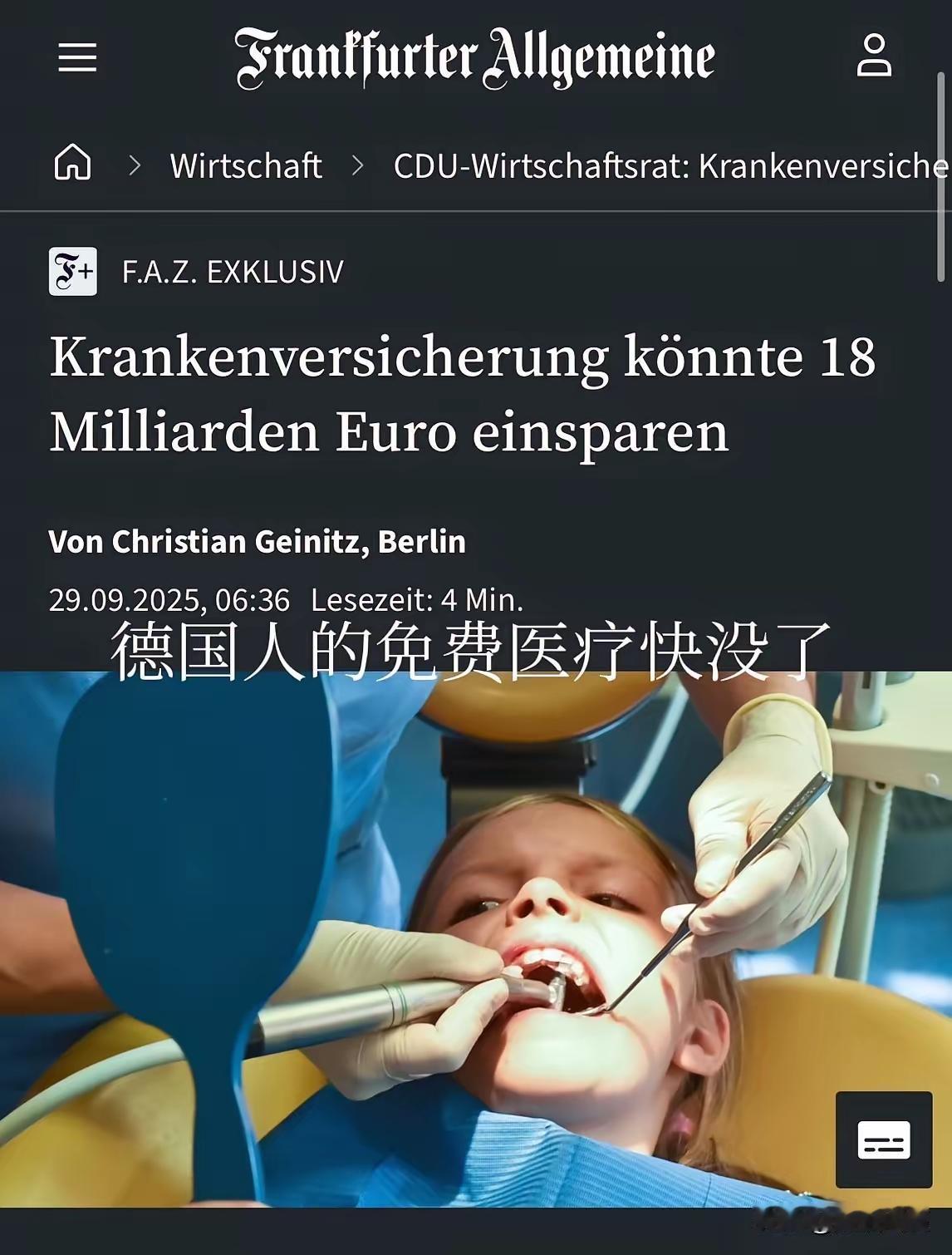 全德国上下震惊!德国刚刚宣布法定普惠医保合同,不再覆盖包括矫正在内的牙科治疗费用。 在短短36个小时内,这是德国人遭受的第三次来自医疗体系的惊吓: 1、德国的配偶不再享受共享的医疗保单。 2、德国取消了护理等级分级,所有患者必须通过家庭医生转诊。 3、今天轮到了牙科。 网友评论: 看看德国医保每月交多少?还有护工险每月都要交,欧美日韩医保都是每月收入十分之一左右,比起他们我们真的很廉价 德国是钱多的烧包,把几百万难民弄进来包吃包住包生。现在中国弄K证也是异曲同工 五十年代毛主席提议快速流水作业培训医护人员,三个月培训,然后到广大农村做乡村医生。这个举措为新中国医疗医护做了突出的贡献。 以前有中国供养着,还可以胡折腾!现在得学会过苦日子了!
