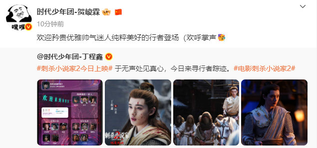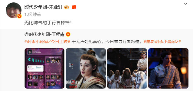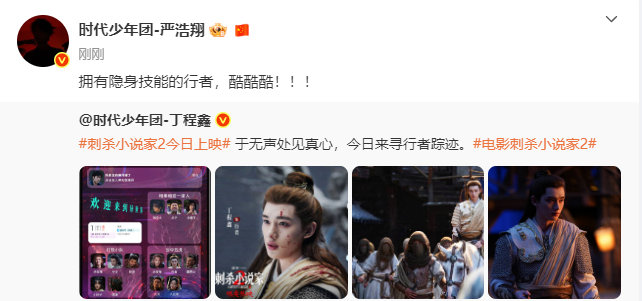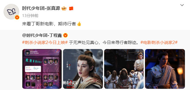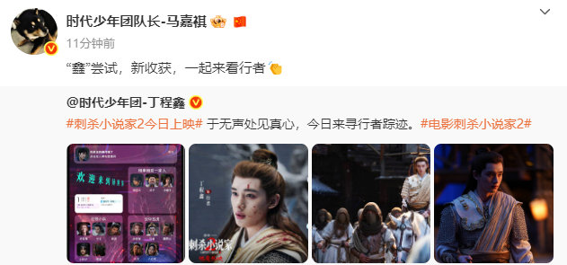 时代少年团为丁程鑫行者宣传,时团全员宣传丁程鑫刺杀小说家2今日上映,双刃夺权,隐身秘术,启程异世冒险之旅,决意破界改写命运。和一起与行者银幕相见!