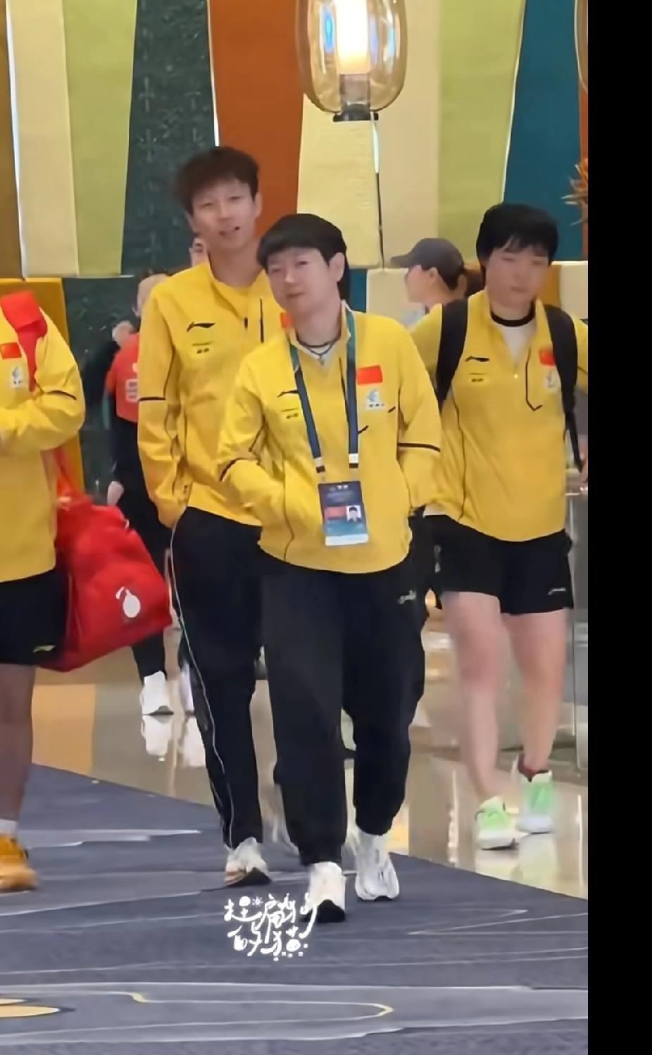 考古刷到莎姐“炸街”名场面! 今天刷到澳门乒乓球世界杯的旧图,孙颖莎穿黄色队服双手插兜,带着林高远、蒯曼、林诗栋一群人,走路“大姐大”范儿拉满,像带小小兄弟们出来炸街,这气场谁看了不说绝!孙颖莎名场面 林高远 林诗栋