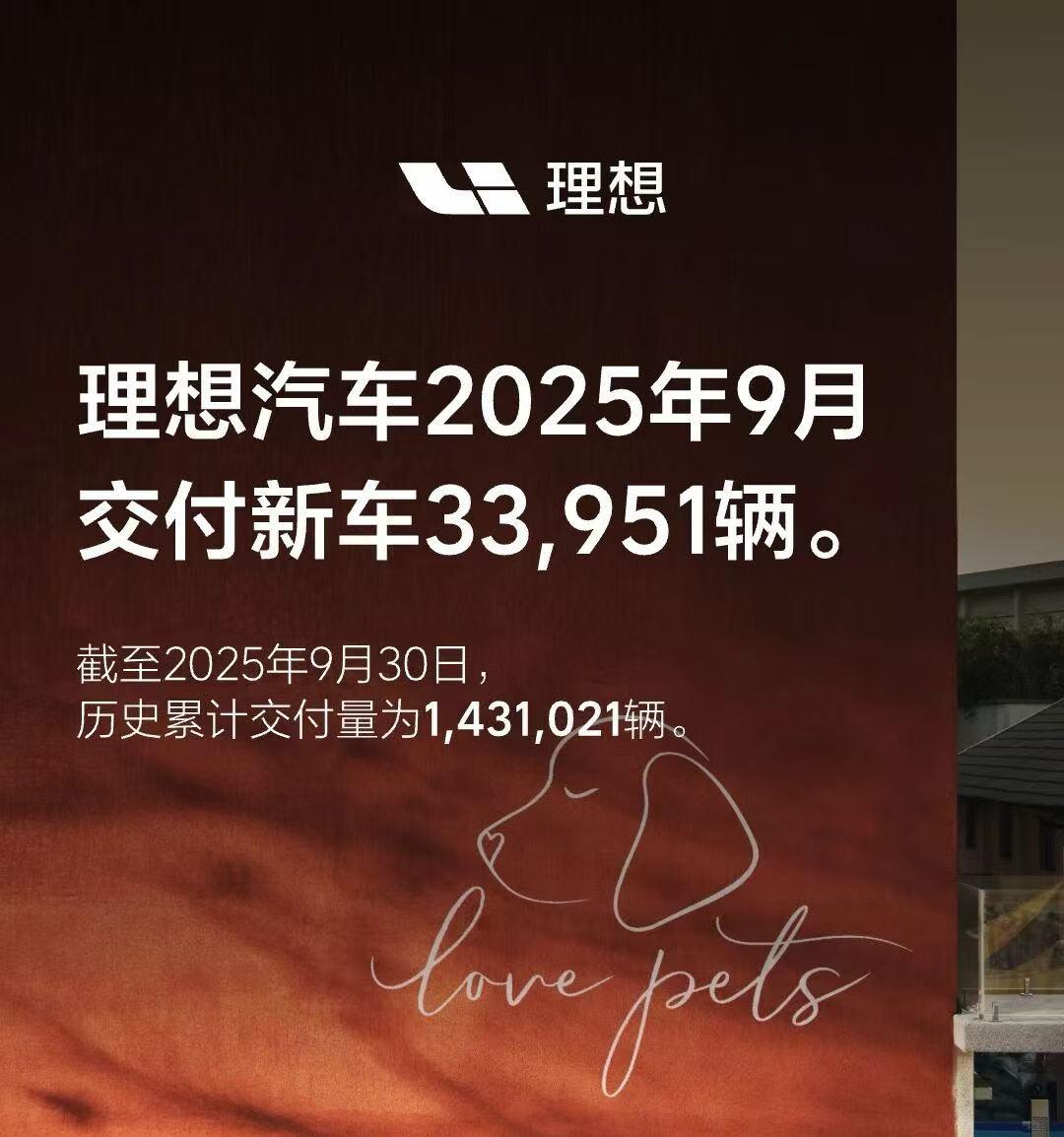 【理想汽车9月交付近3.4万辆】日前,理想汽车官宣:今年第三季度,理想汽车交付93211辆。其中,9月交付新车33951辆。除了理想L系列之外,理想汽车纯电家族也开始交付。其中,理想i8工厂正在加速提升产能,目标成为六座纯电SUV爆款产品。同时,理想i6于9月26日正式上市,现已开启交付。接下来,理想能否重回新势力销冠,就看纯电能带来多少增量,毕竟李厂长对于理想i6的目标可是月销破万辆。【来自懂车帝车友圈】