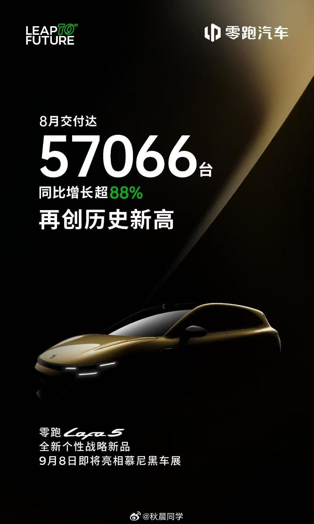 第一个公布9月销量的车企来了,零跑汽车9月交付66657台(8月57066台),登顶榜一,太强了[允悲]遥遥领先其他新势力