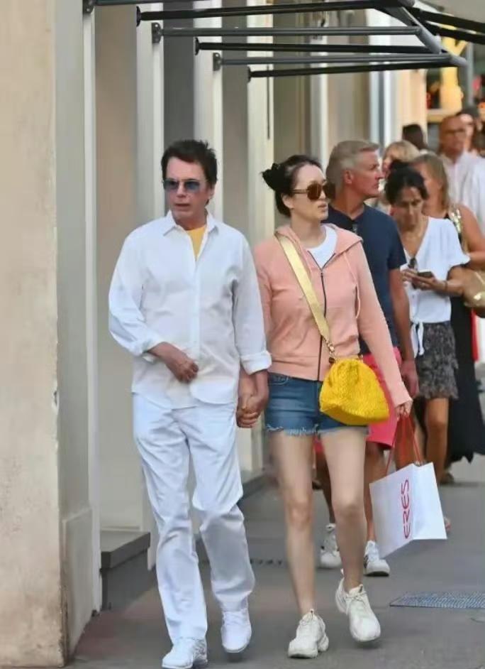 巩俐真是被法国老公宠成小公主,两人全程手牵手一起逛街,巩俐穿着橘粉色外套搭牛仔短