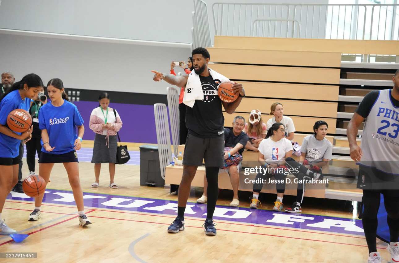 “泡指导”上线!分享一组保罗·乔治今日随队参加NBA关怀(青少年篮球训练营)活动的现场酷图~[爱你]费城76人NBA季前赛PaulGeorge保罗乔治[超话]